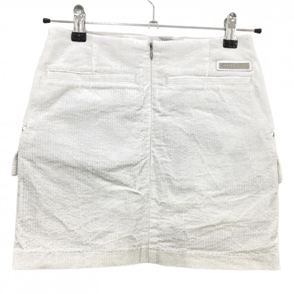 【美品】マークアンドロナ コーデュロイスカート 白 ポケット合成皮革 裏地付 レディース 36(S) ゴルフウェア MARK&LONA