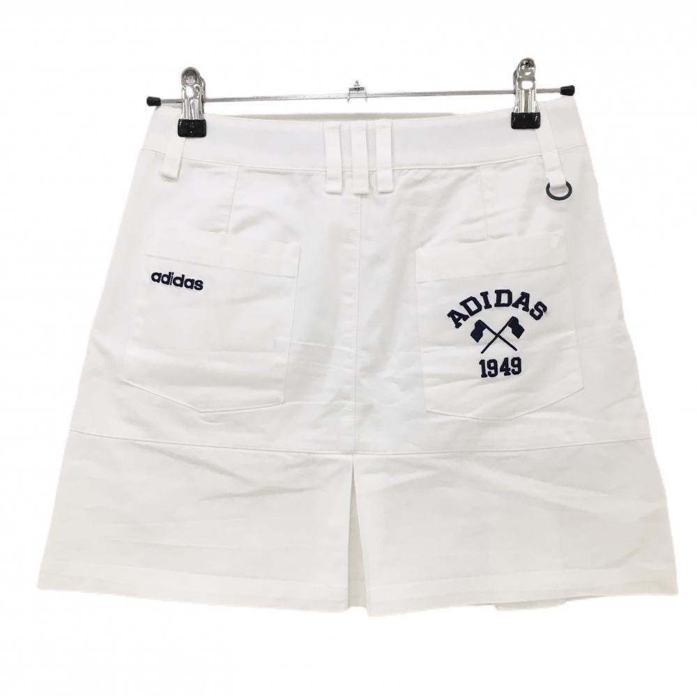 アディダス スカート 白×ネイビー ボックスプリーツ バックロゴ刺しゅう レディース S/P ゴルフウェア adidas