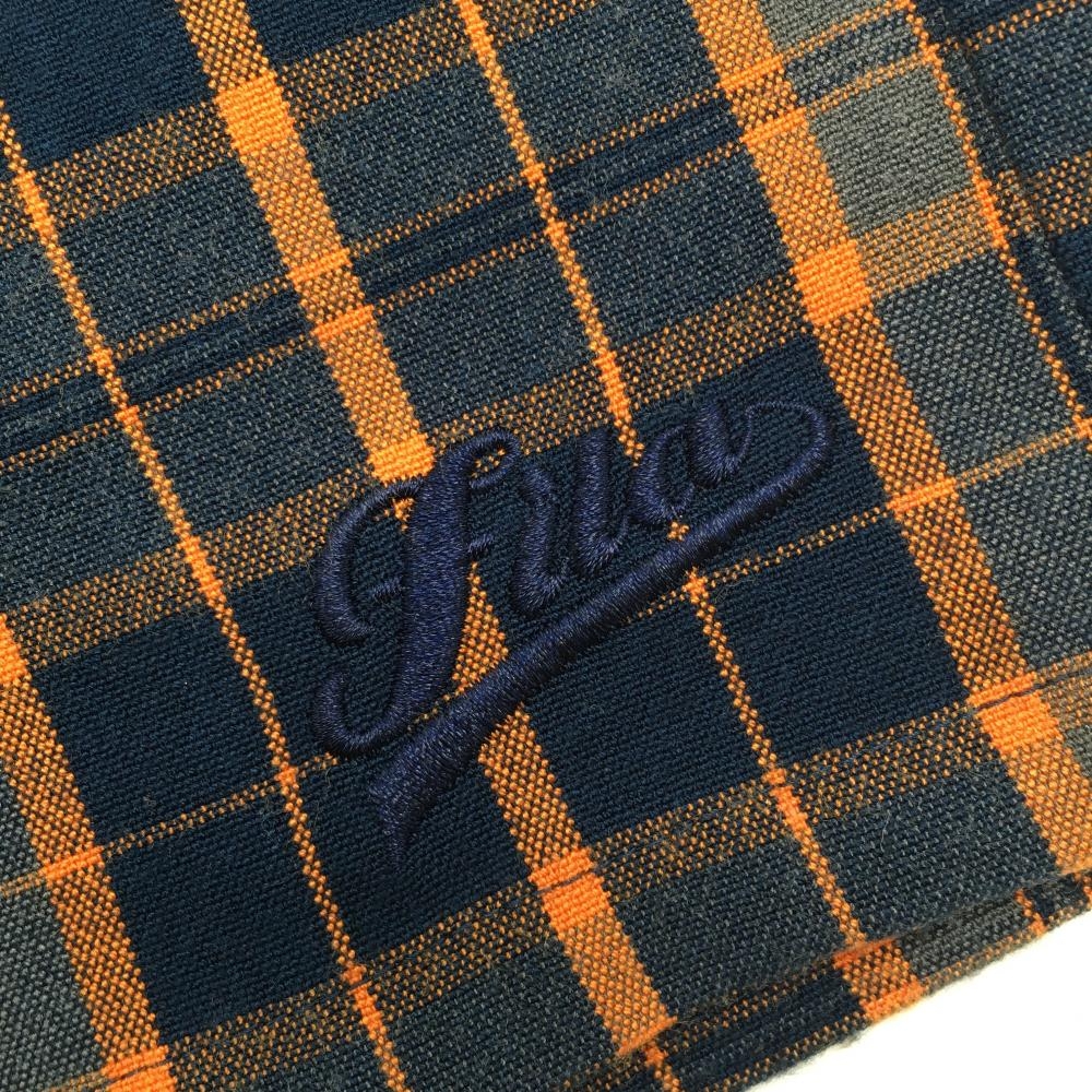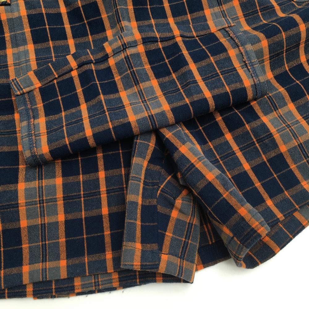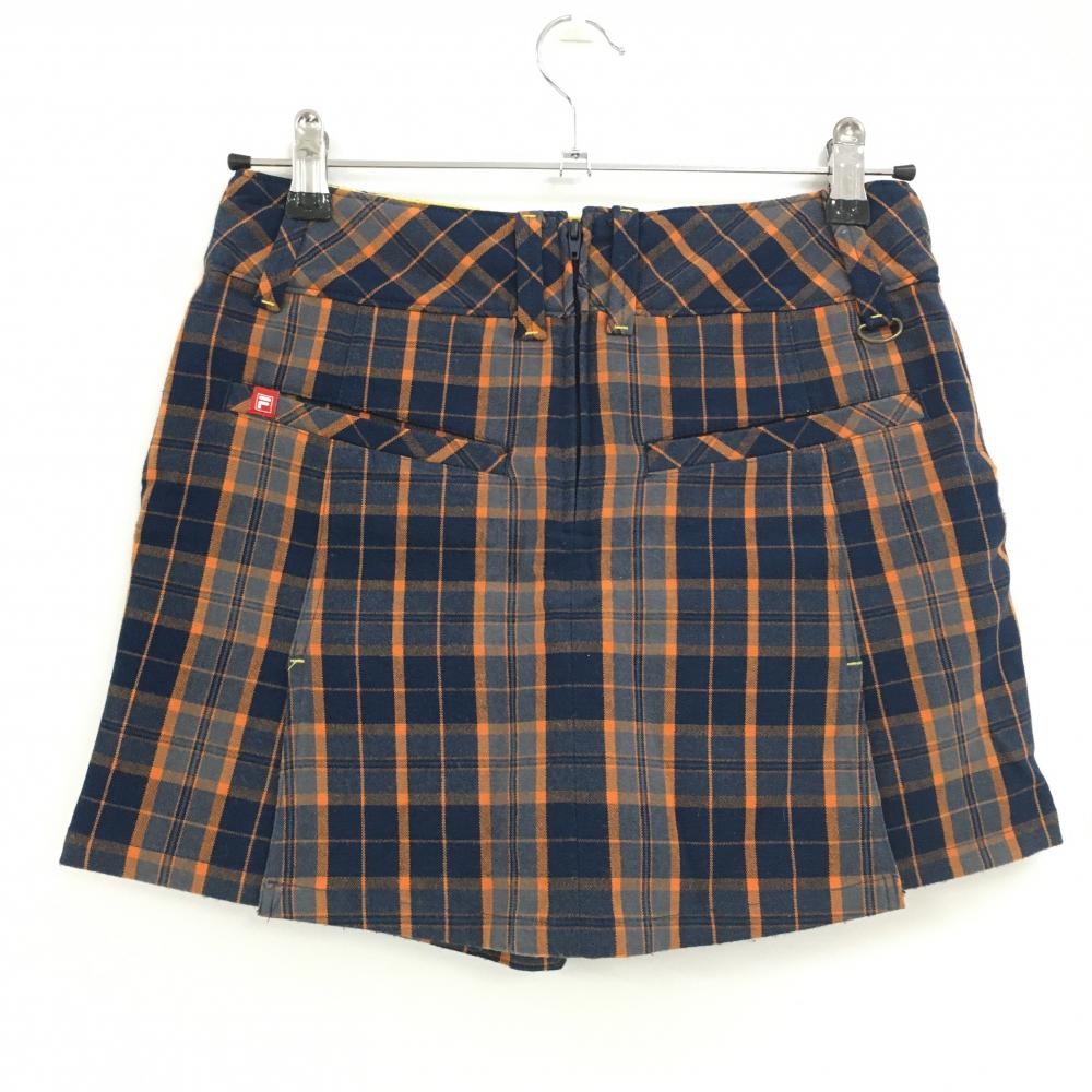 【超美品】フィラゴルフ スカート ネイビー×オレンジ チェック ティー装着可 内側インナーパンツ レディース S ゴルフウェア FILA GOLF