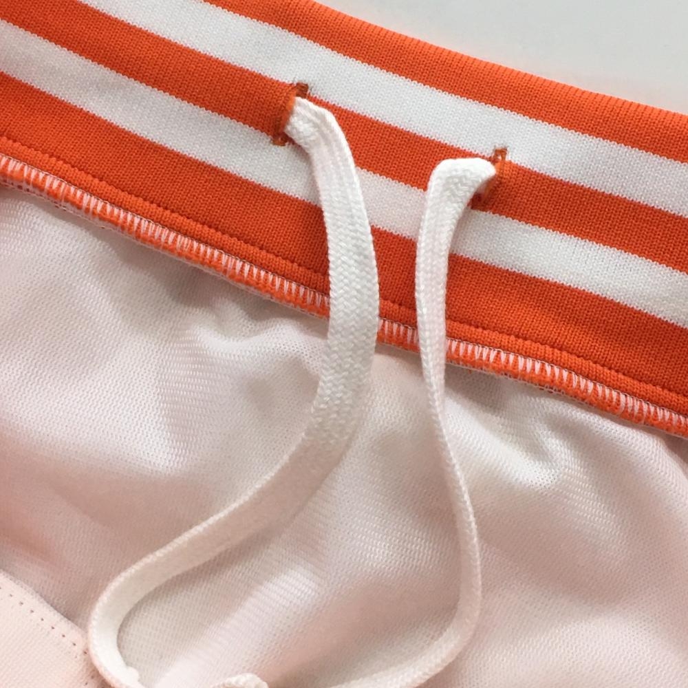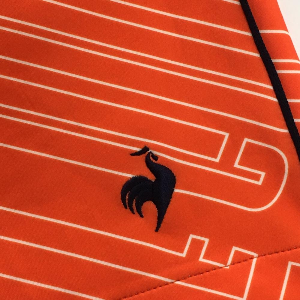 【超美品】ルコック ストレッチスカート オレンジ×白 総柄 ウエストゴム レディース 11 ゴルフウェア 2022年モデル le coq sportif
