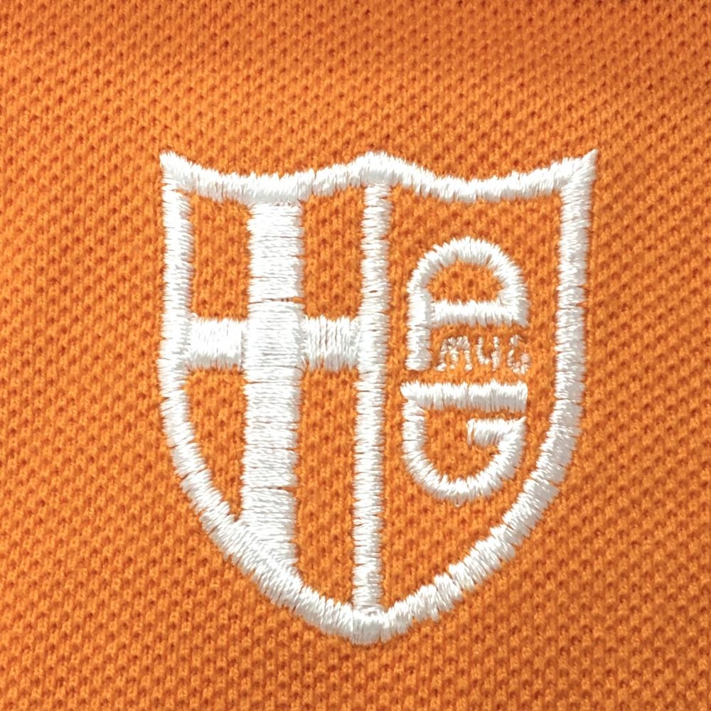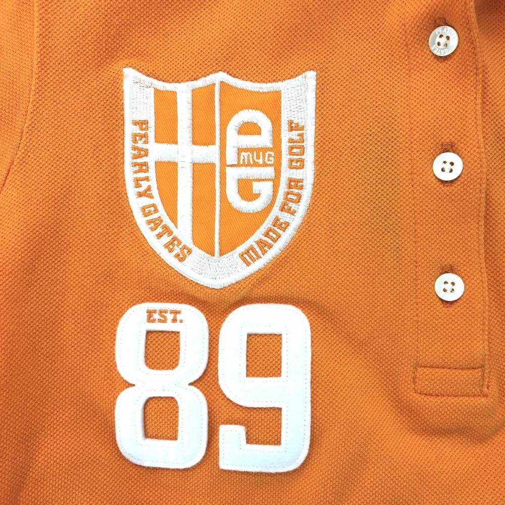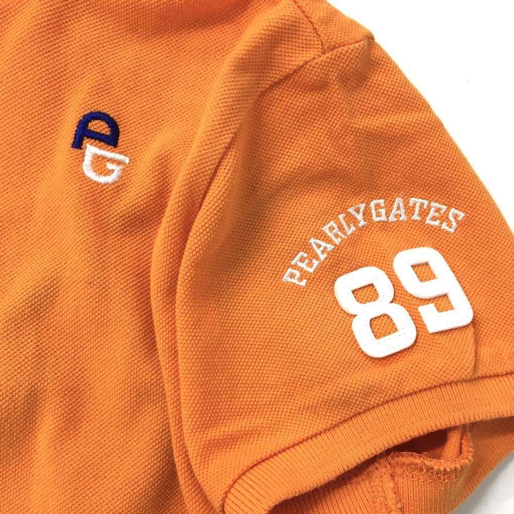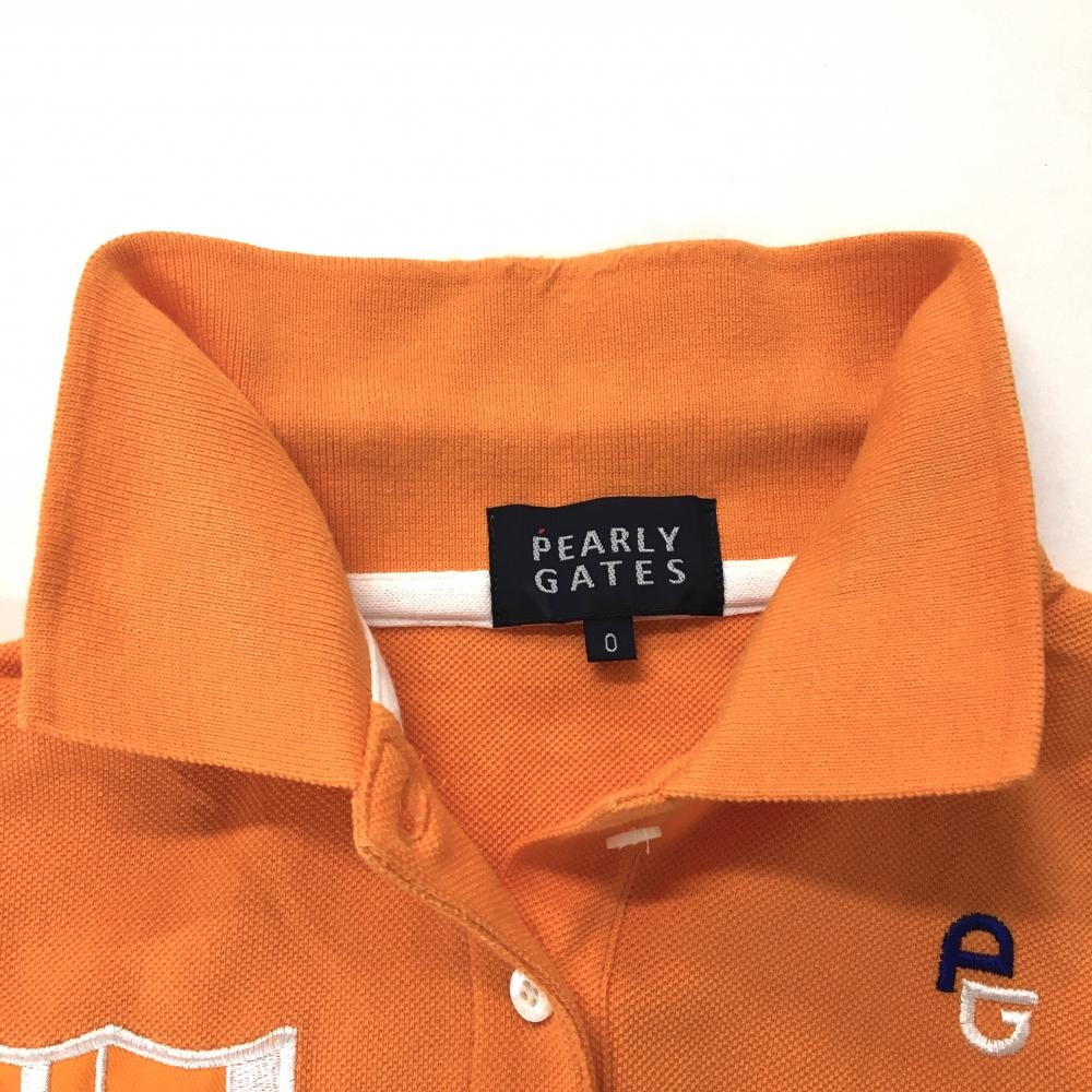 【美品】パーリーゲイツ 半袖ポロシャツ オレンジ×白 襟裏ロゴ フェルトワッペン レディース 0(S) ゴルフウェア PEARLY GATES
