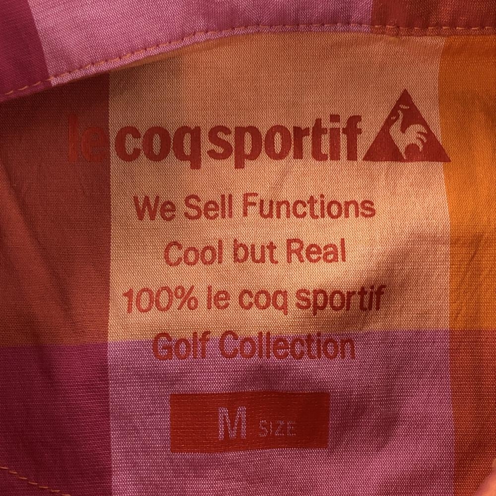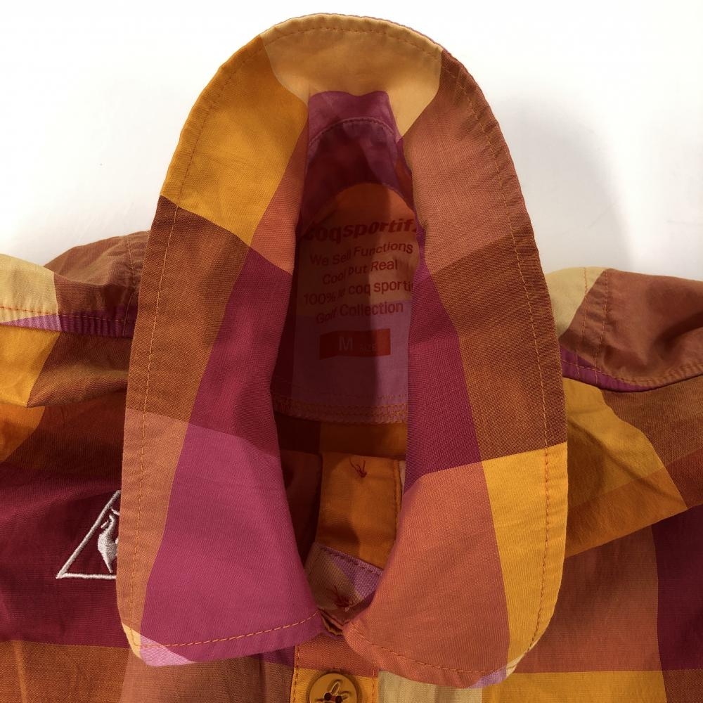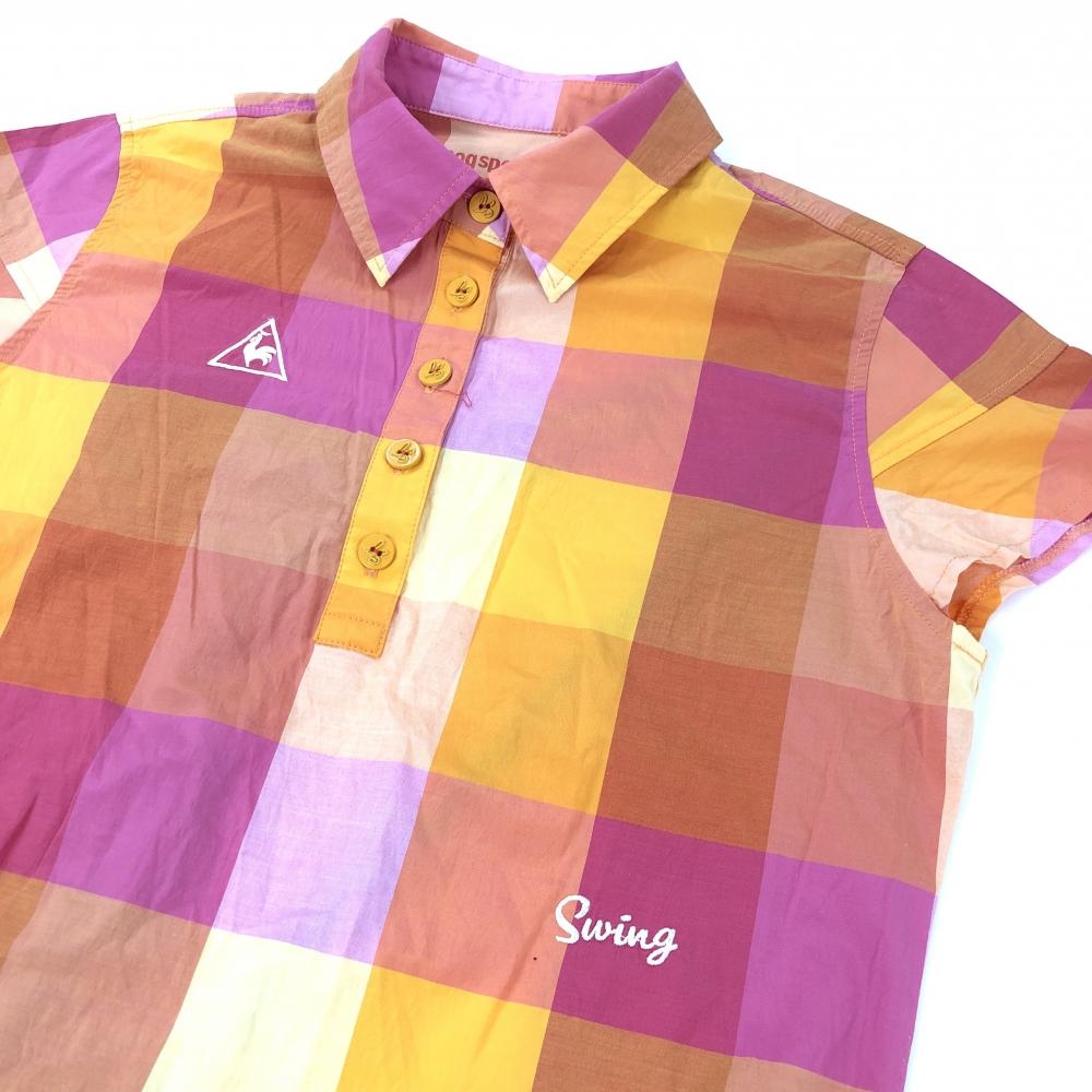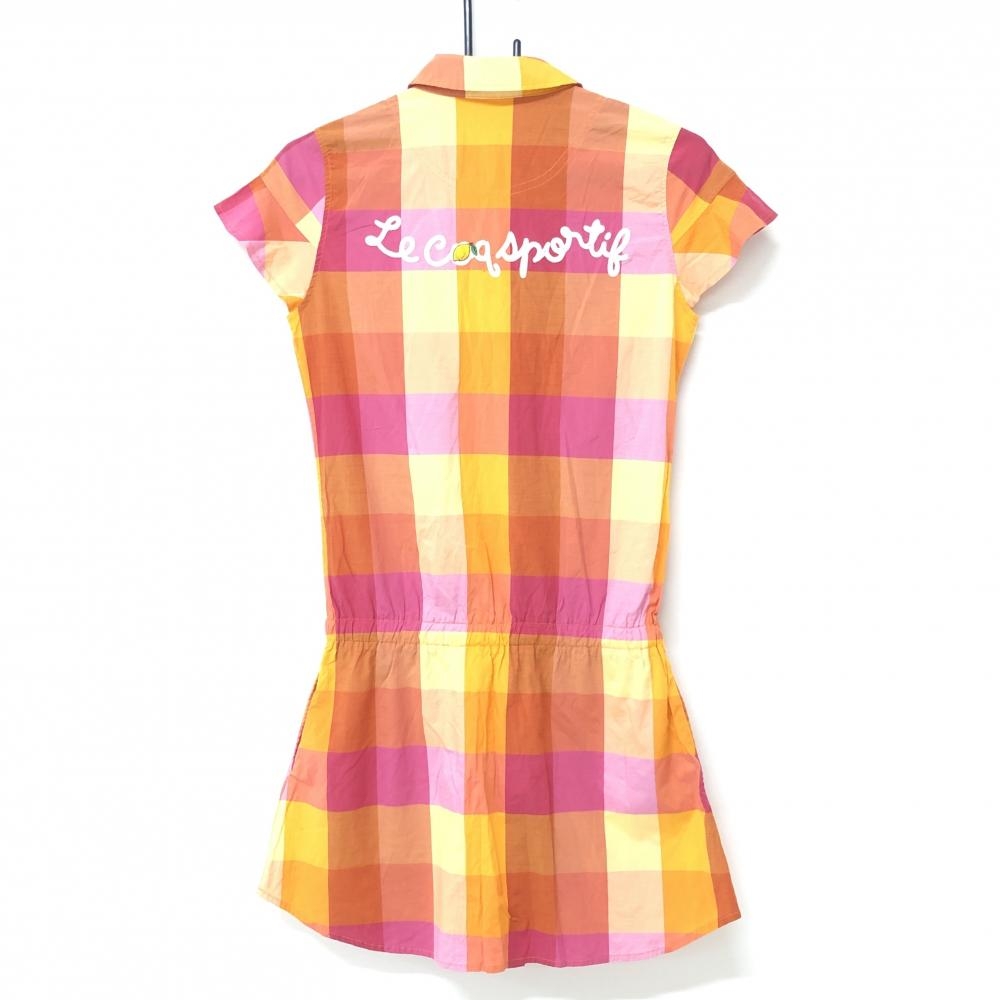 【美品】ルコック 半袖ワンピース オレンジ×ピンク ブロックチェック柄 ロゴ刺しゅう レディース M ゴルフウェア le coq sportif
