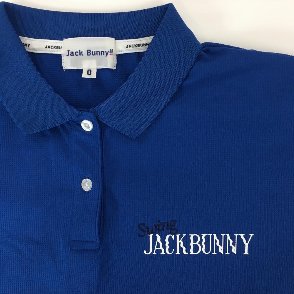 【超美品】ジャックバニー 半袖ポロシャツ ブルー 背面ビッグロゴ ストレッチ レディース 0(S) ゴルフウェア 2024年モデル Jack Bunny