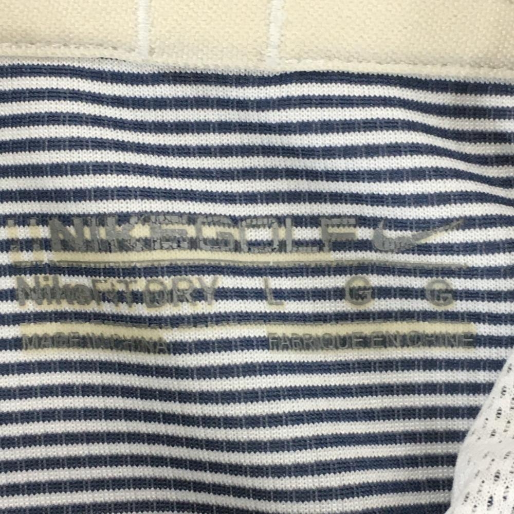 ナイキゴルフ 半袖ポロシャツ 白×グレーネイビー 総柄織生地 ハーフジップ メンズ L ゴルフウェア NIKE