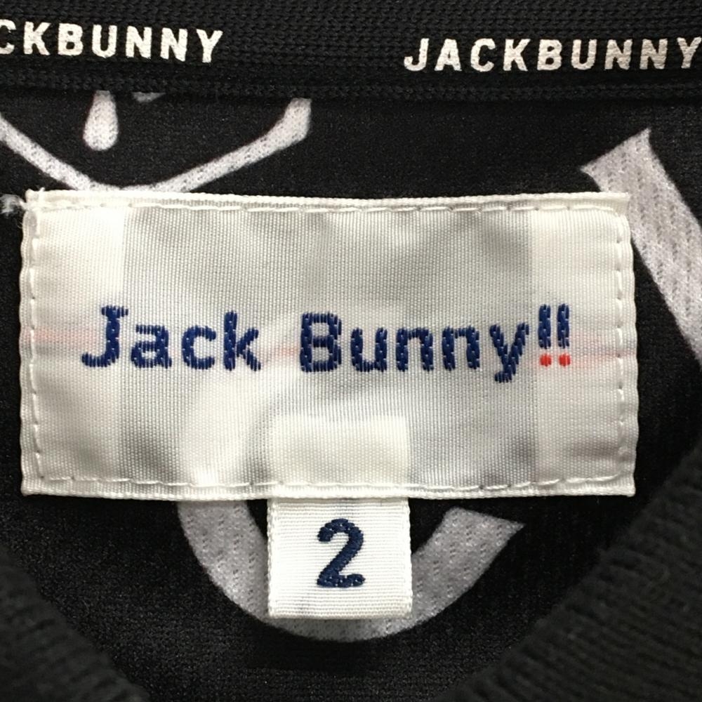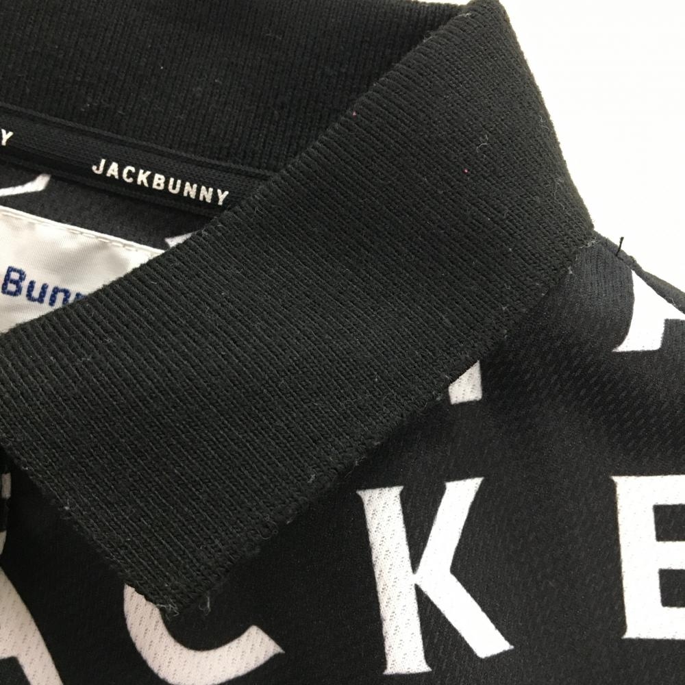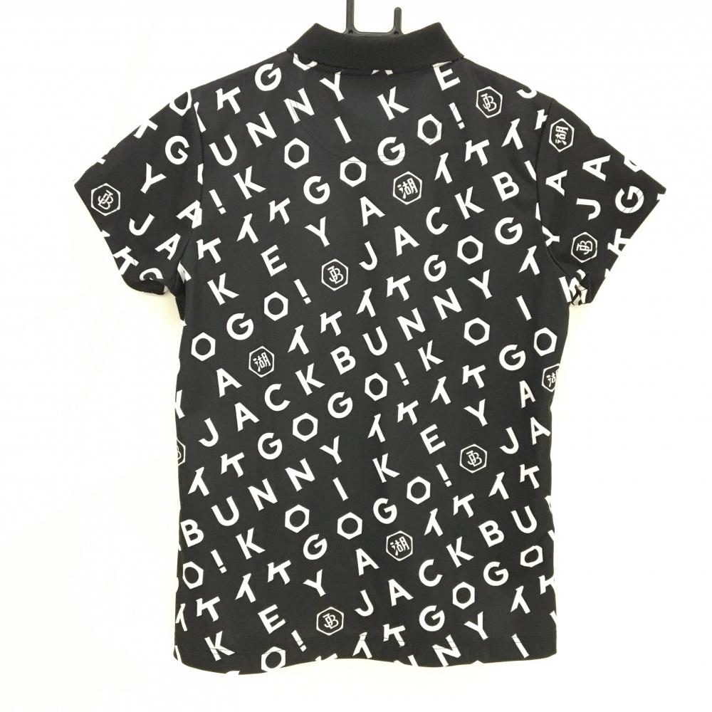 【美品】ジャックバニー×湖池屋 半袖ポロシャツ 黒×白 ロゴ総柄 レディース 2(L) ゴルフウェア 2024年モデル Jack Bunny