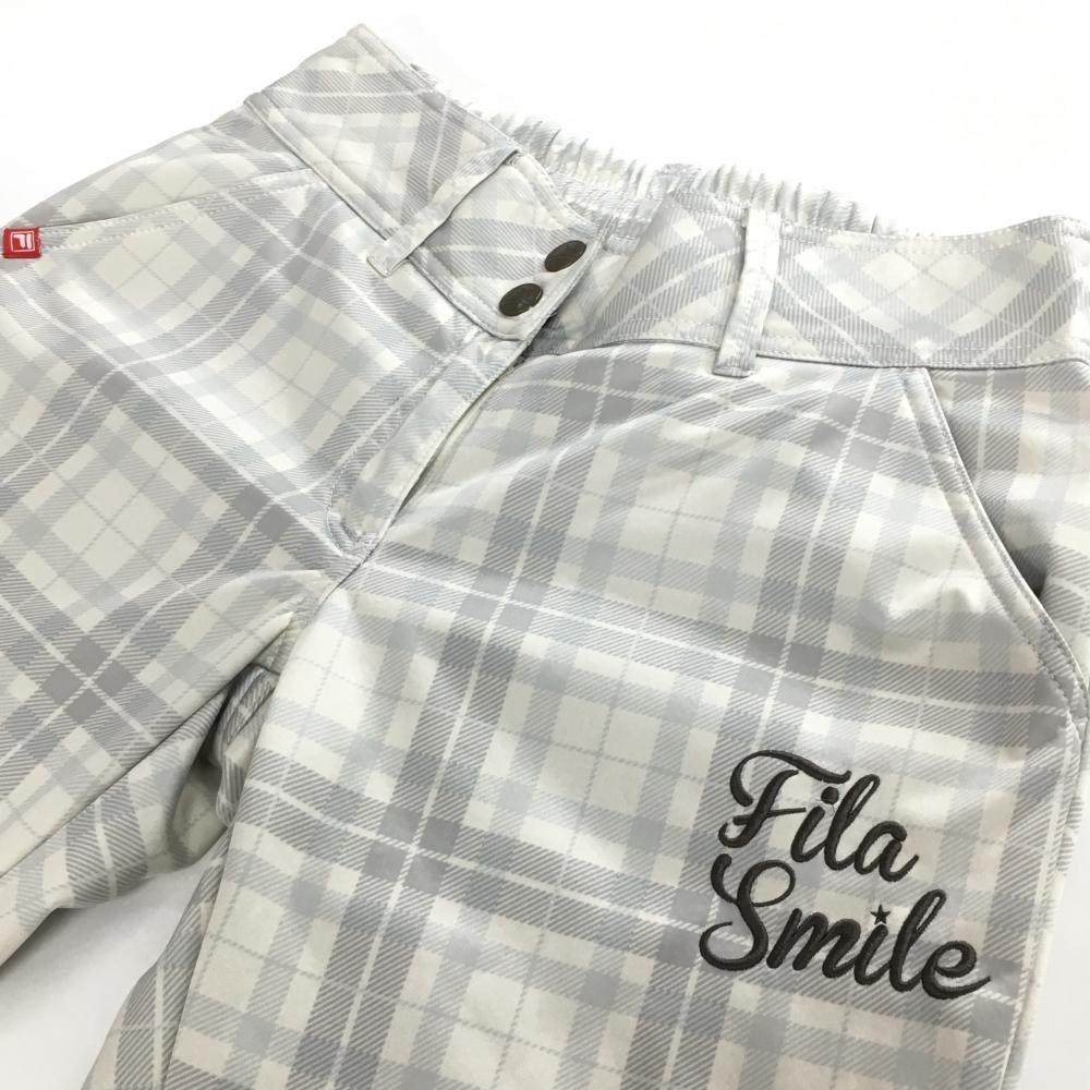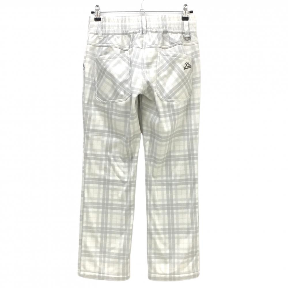 【超美品】フィラゴルフ パンツ アイボリー×ライトグレー チェック柄 裏起毛 ウエストゴム 調節紐 レディース L ゴルフウェア FILA GOLF