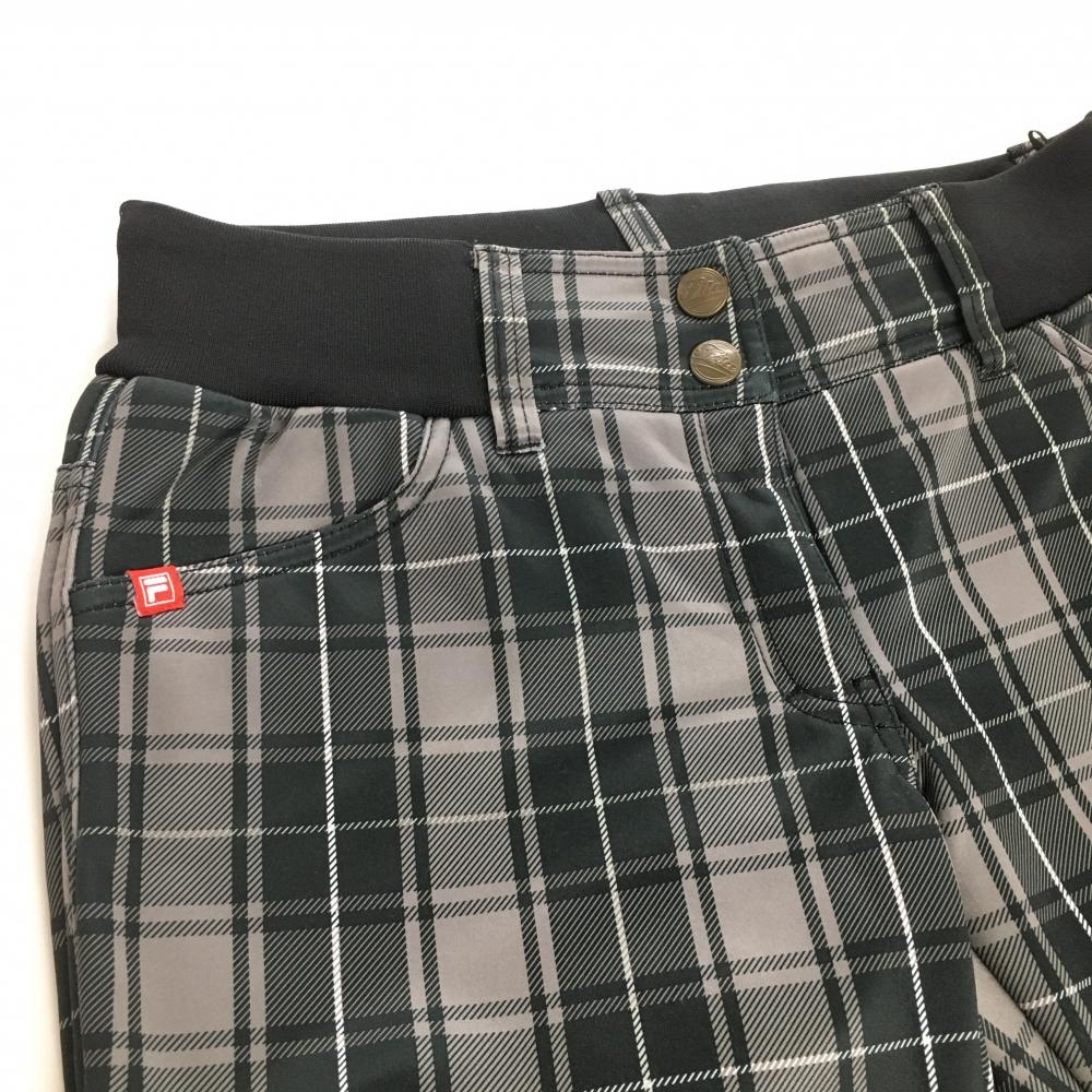【超美品】フィラゴルフ パンツ グレー×黒 チェック柄 裏起毛 ウエストゴム レディース L ゴルフウェア FILA GOLF