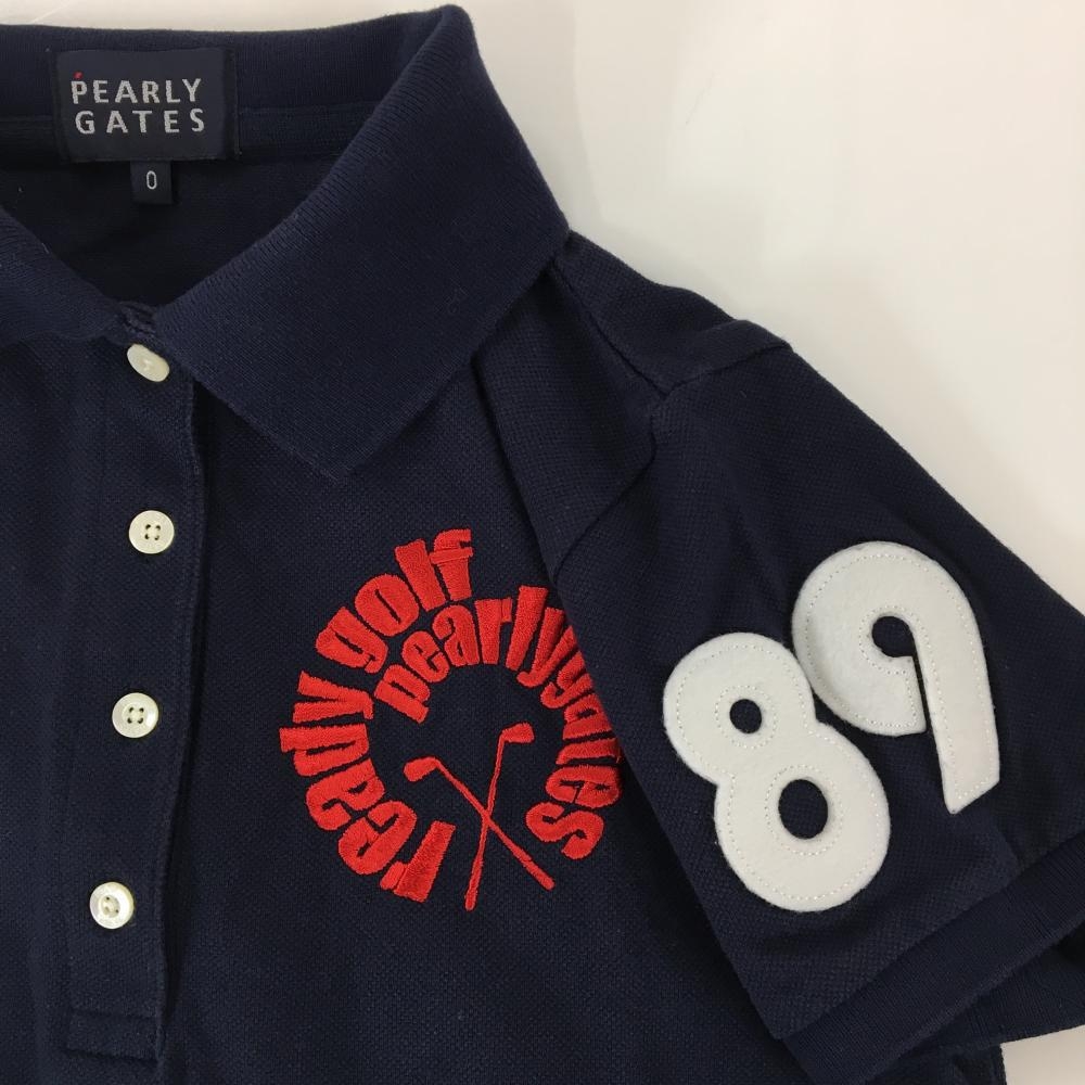 パーリーゲイツ 半袖ポロシャツ ネイビー ロゴ刺しゅうレッド レディース 0(S) ゴルフウェア PEARLY GATES