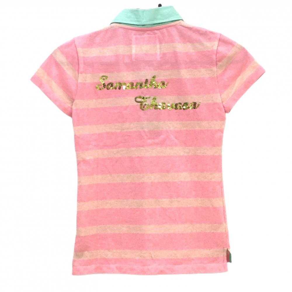 サマンサタバサ UNDER25 半袖ポロシャツ ピンク ボーダー スパンコールロゴ レディース S ゴルフウェア Samantha Thavasa