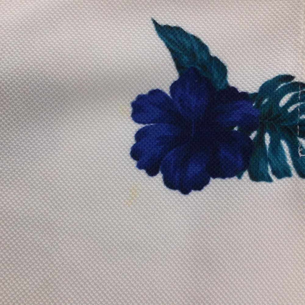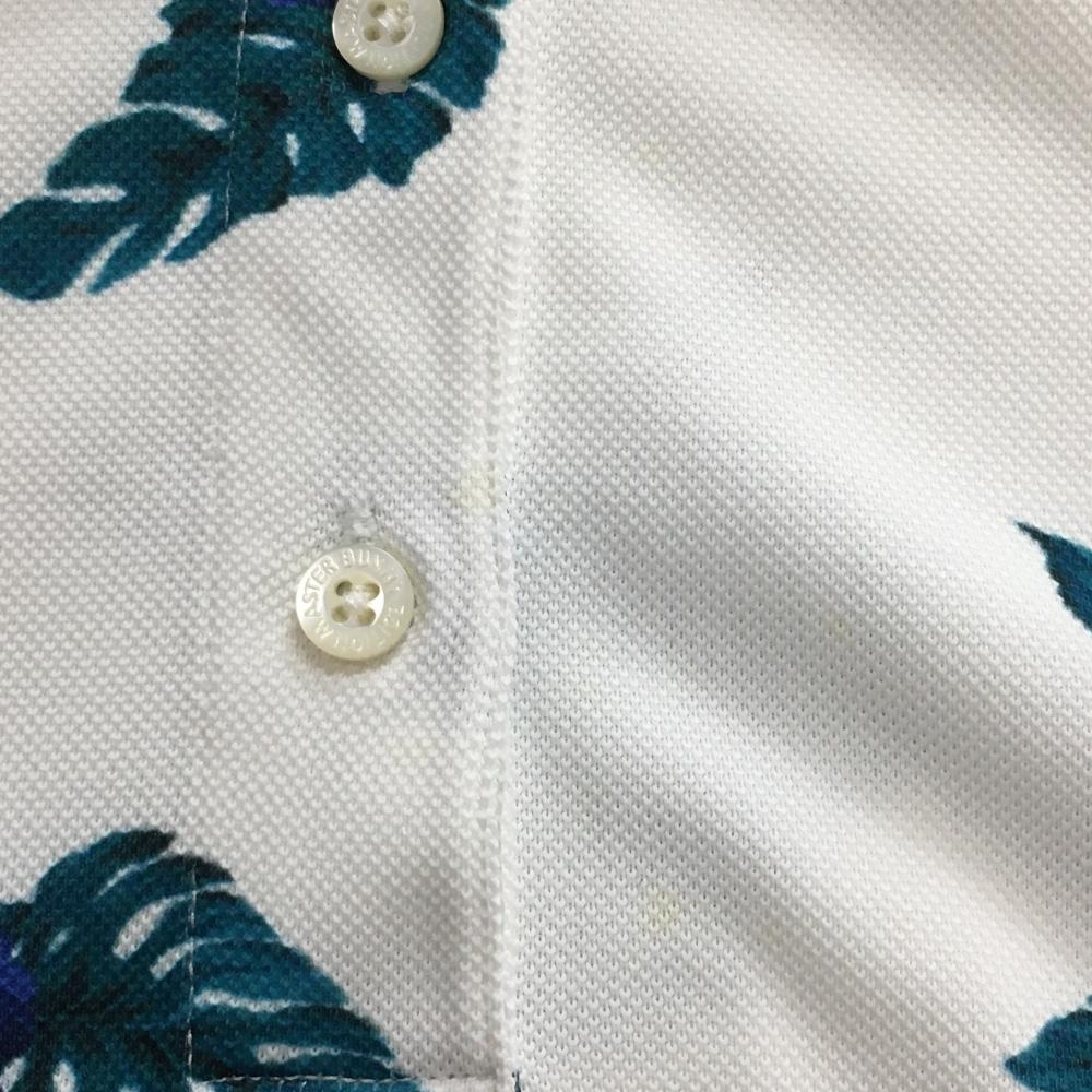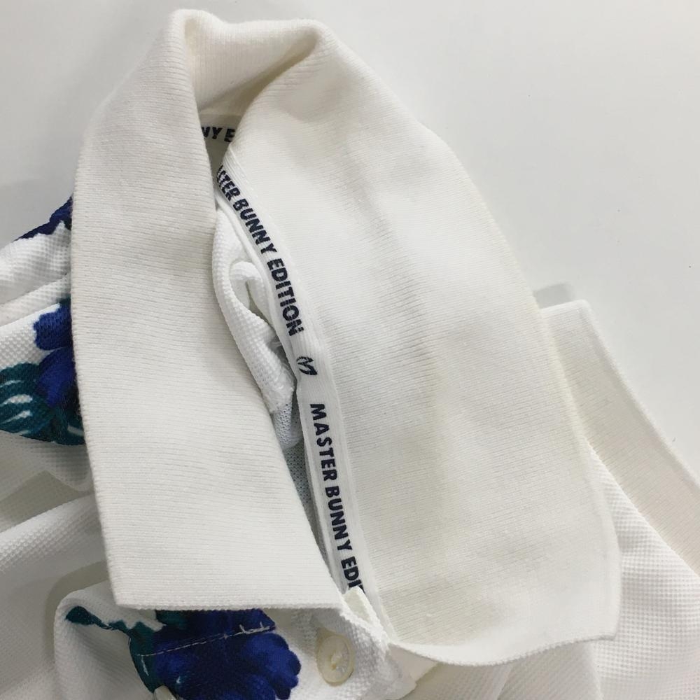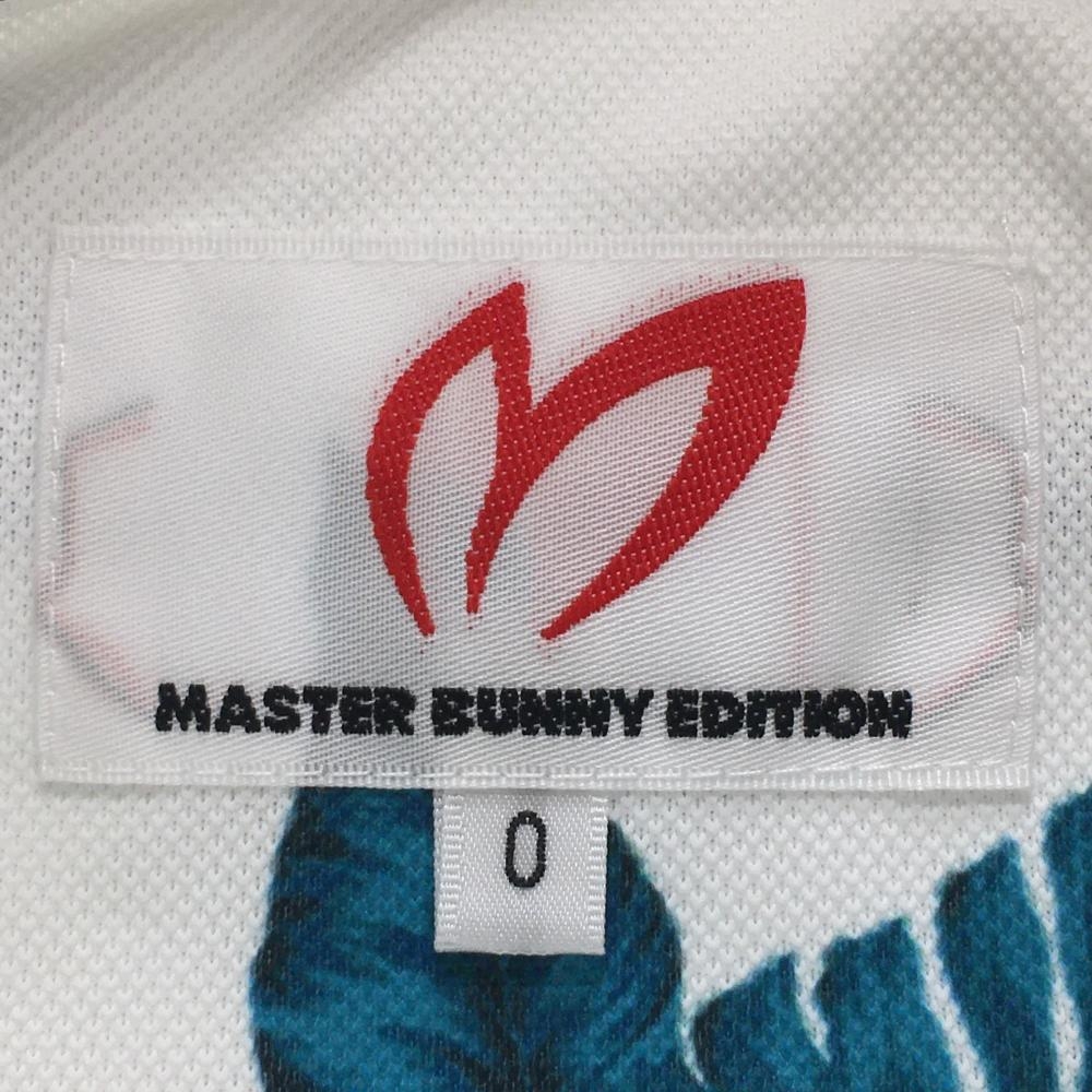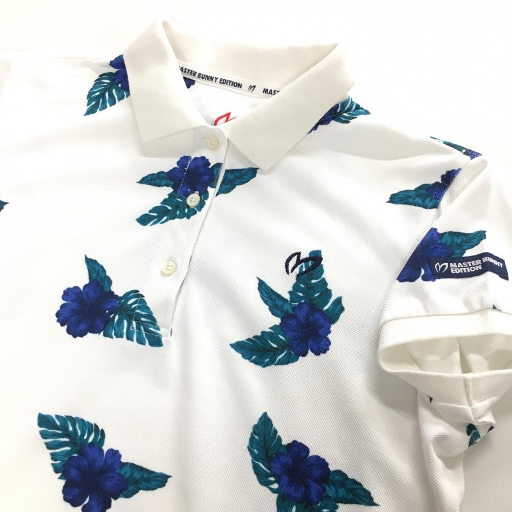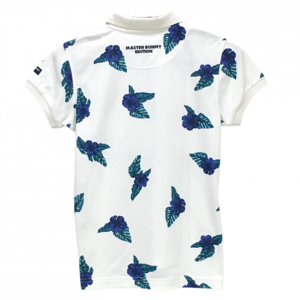 【美品】マスターバニー 半袖ポロシャツ 白×ブルー 花柄 レディース 0(S) ゴルフウェア MASTER BUNNY EDITION