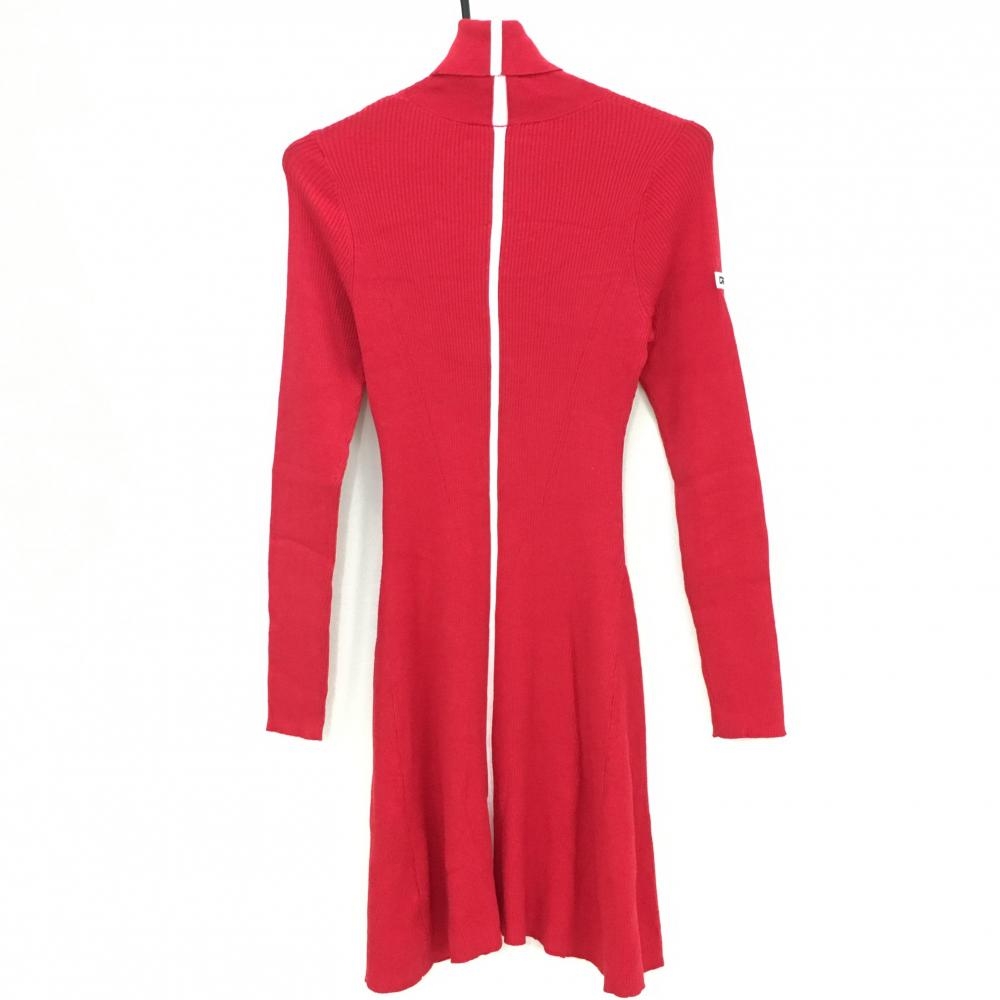 【超美品】シーピージーゴルフ ハイネックニットワンピース レッド×白 ロゴシリコン 後ライン レディース 1 ゴルフウェア CPG GOLF