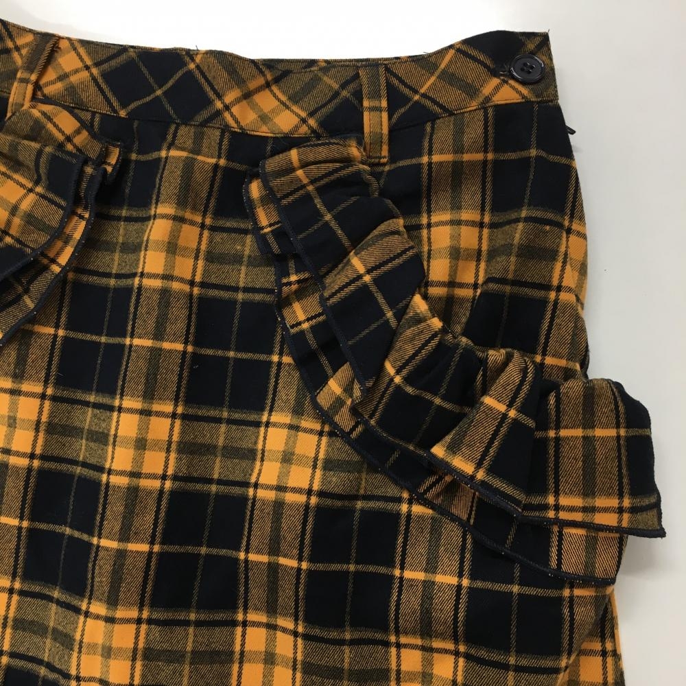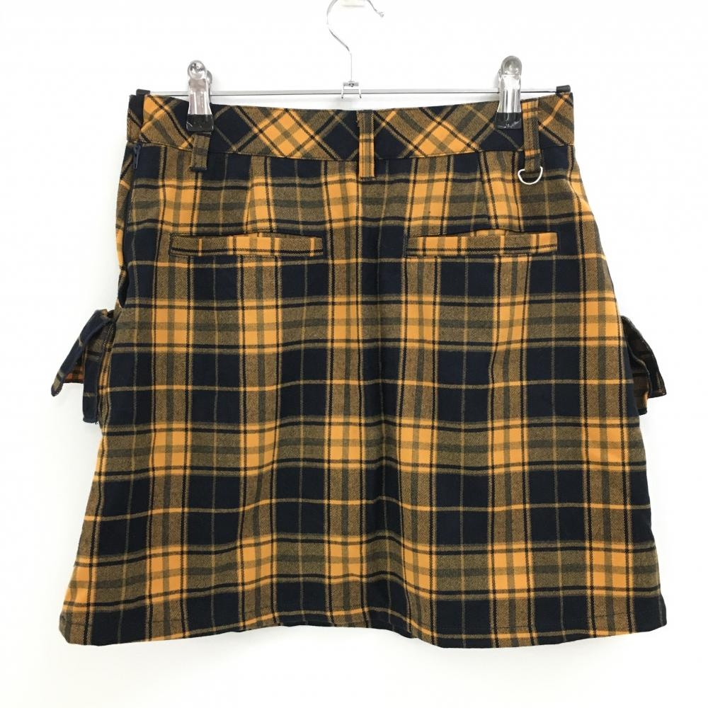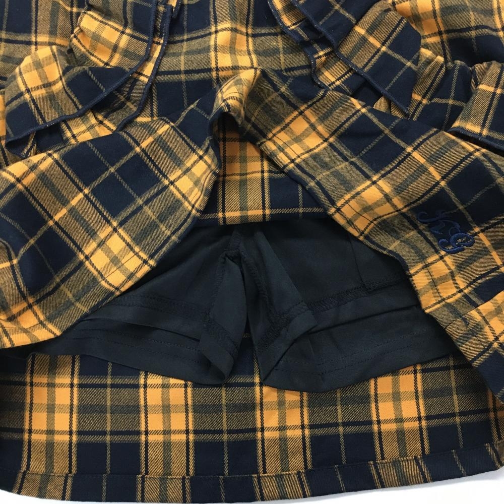 【超美品】キスオンザグリーン スカート オレンジ×黒 チェック 内側インナーパンツ レディース 2(M) ゴルフウェア kiss on the green
