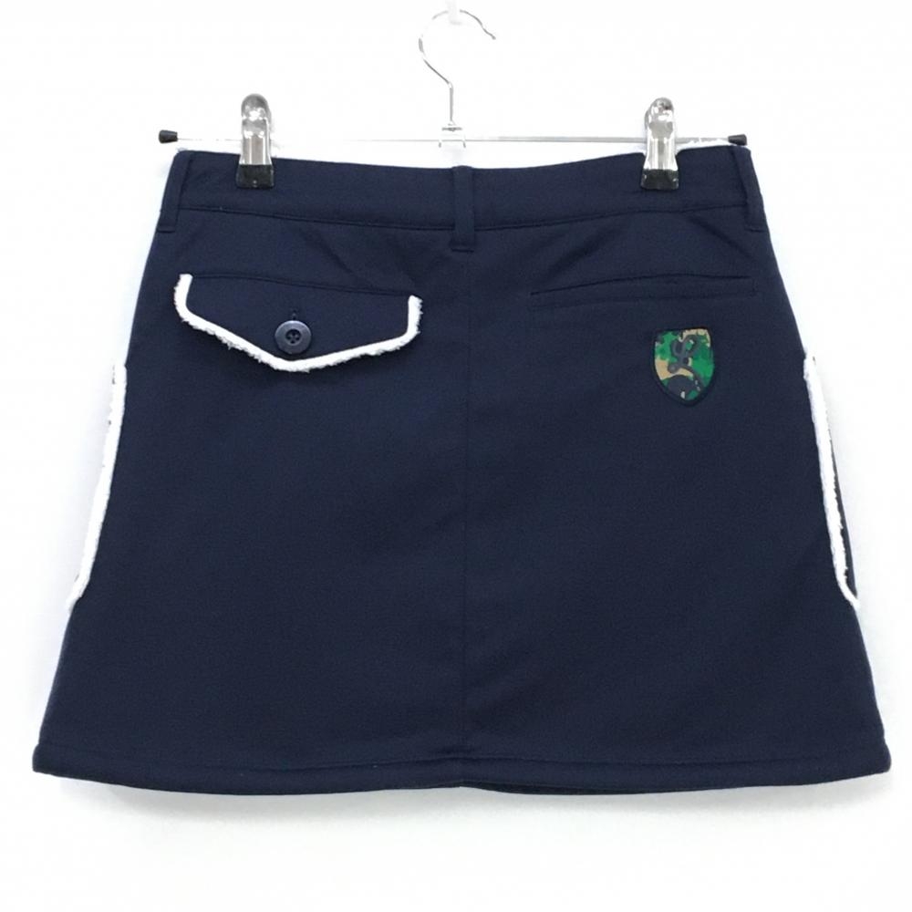 【超美品】ルコックゴルフ スカート ネイビー×白 内側ボア ロゴ刺しゅう レディース 7 ゴルフウェア le coq sportif