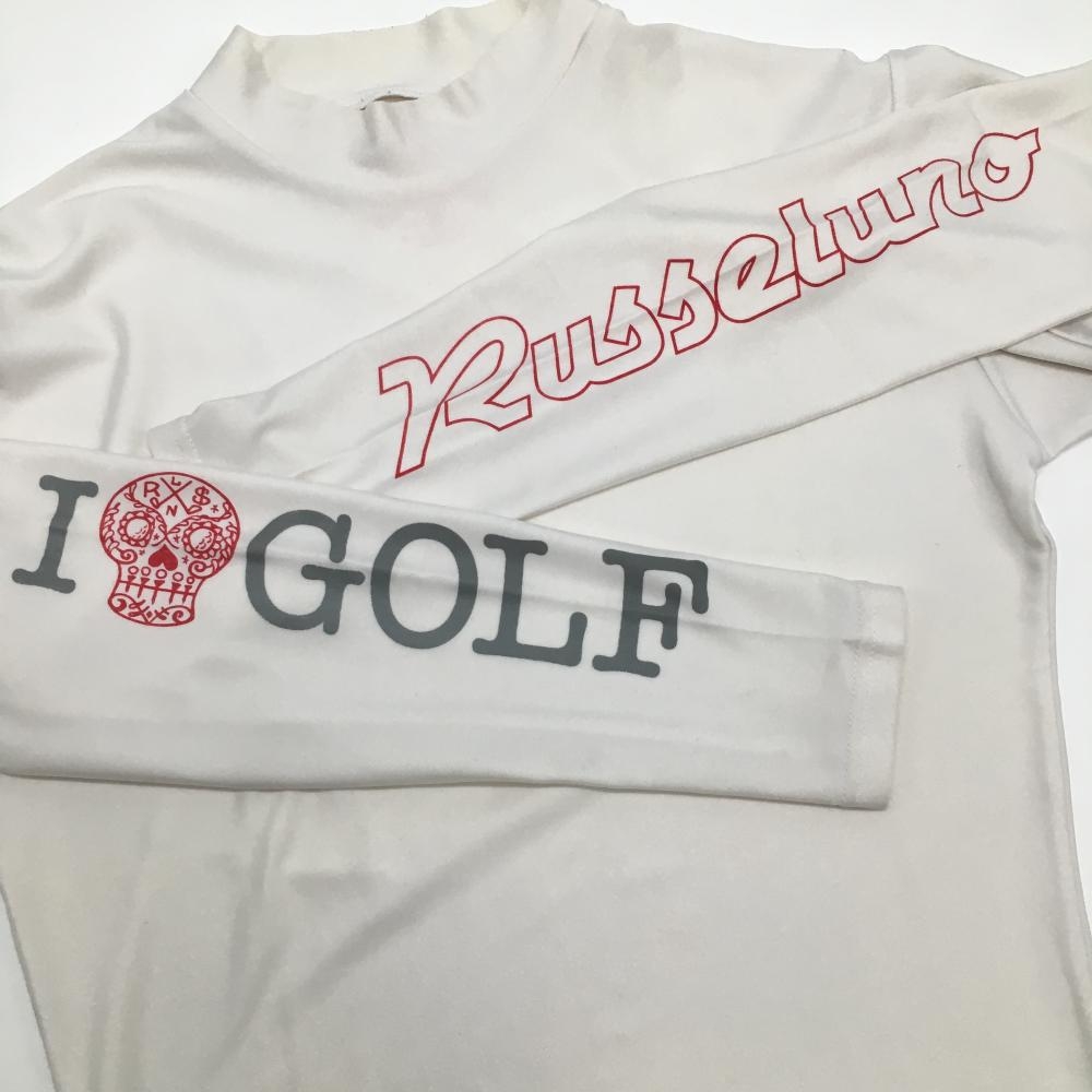 ラッセルノ ハイネックインナーシャツ 白×レッド 袖ロゴプリント レディース M ゴルフウェア RUSSELUNO
