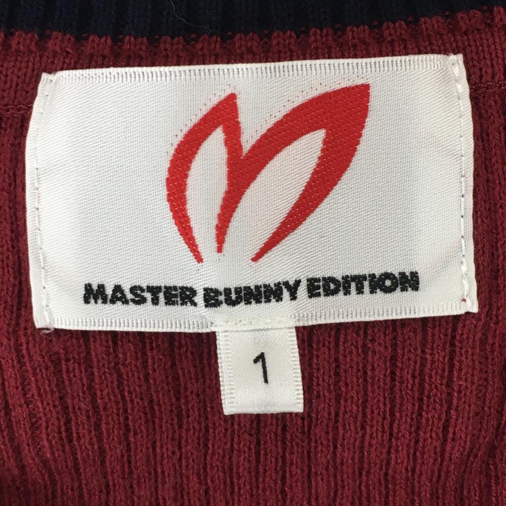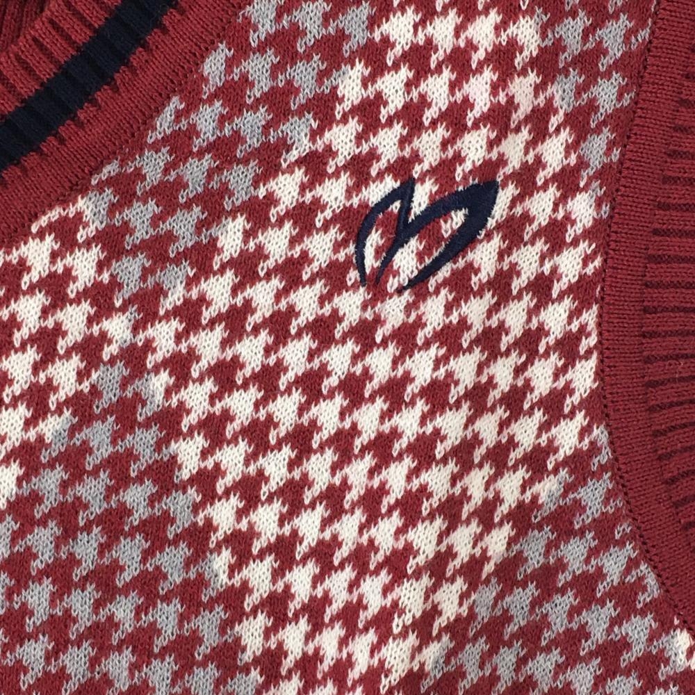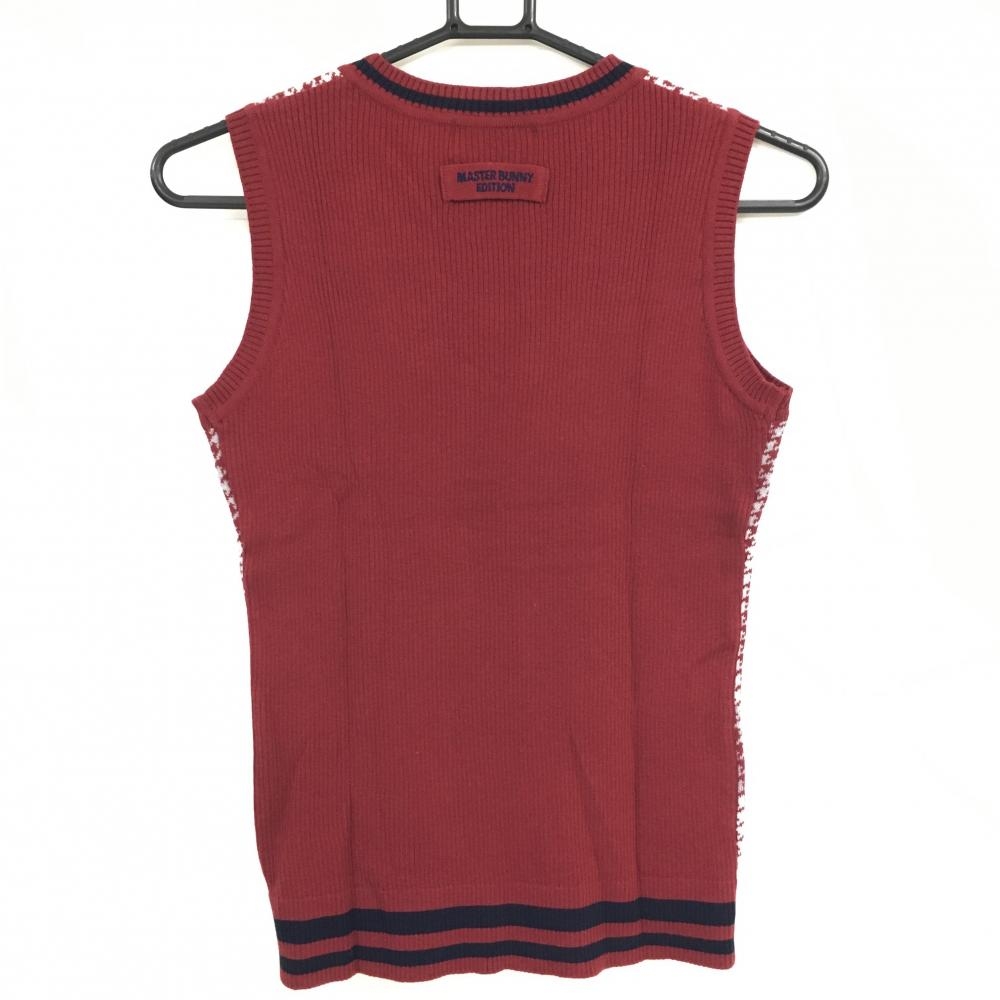 【超美品】マスターバニー ニットベスト ボルドー×白 千鳥格子×ダイヤ柄 Vネック レディース 1(M) ゴルフウェア MASTER BUNNY EDITION