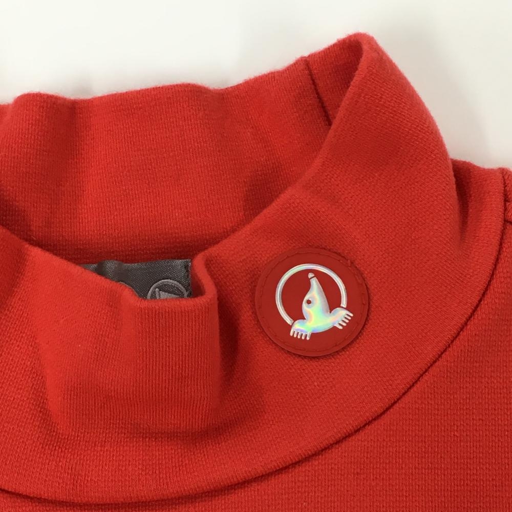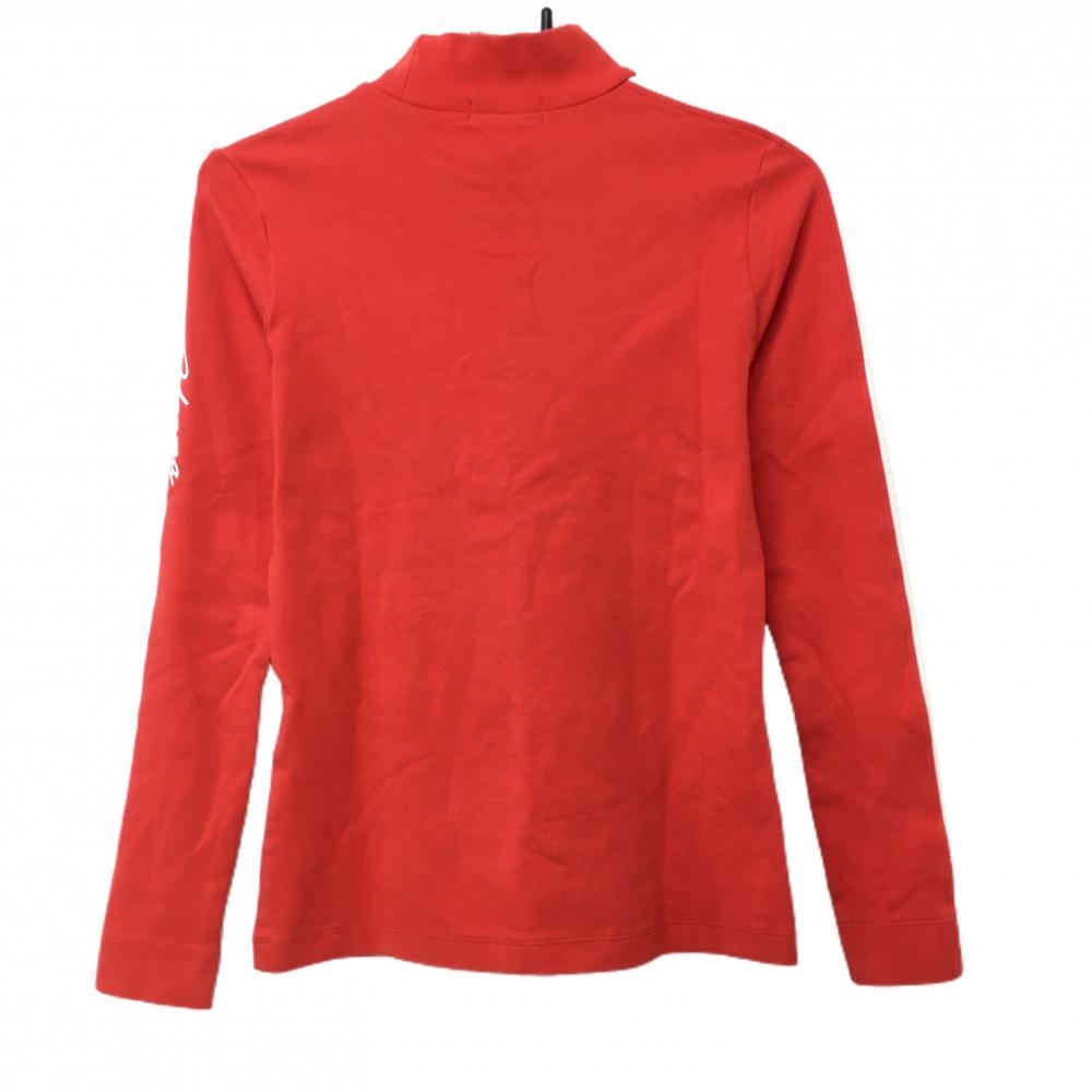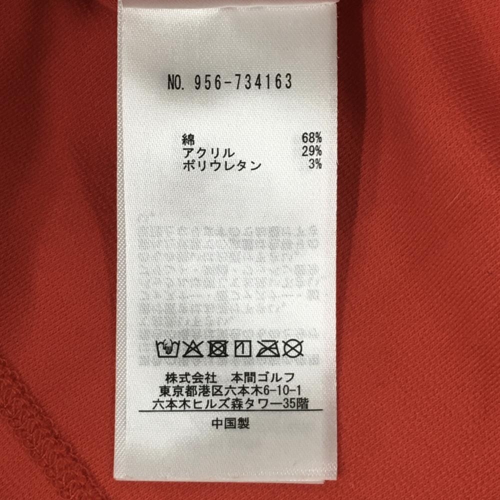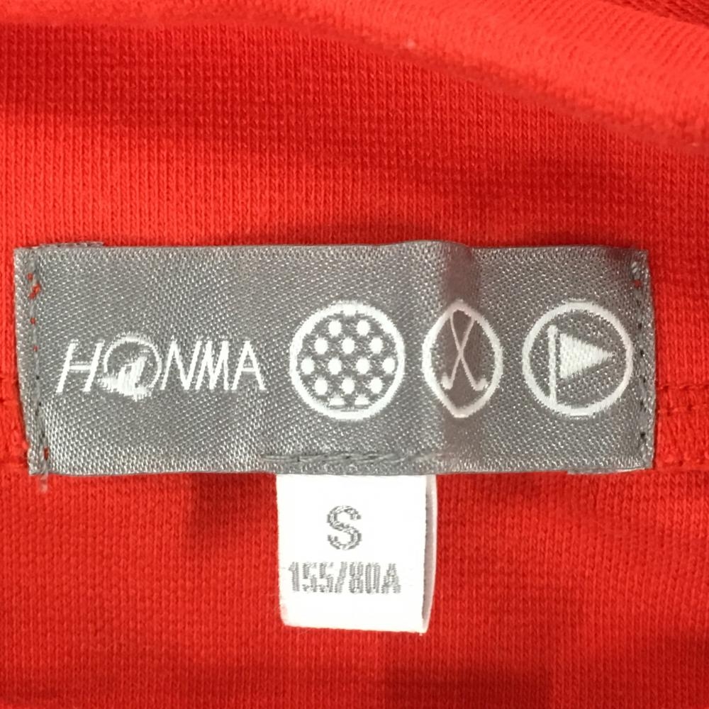 【超美品】ホンマ 長袖ハイネックシャツ オレンジ系×白 ネックロゴ 肩袖ライン レディース S ゴルフウェア HONMA