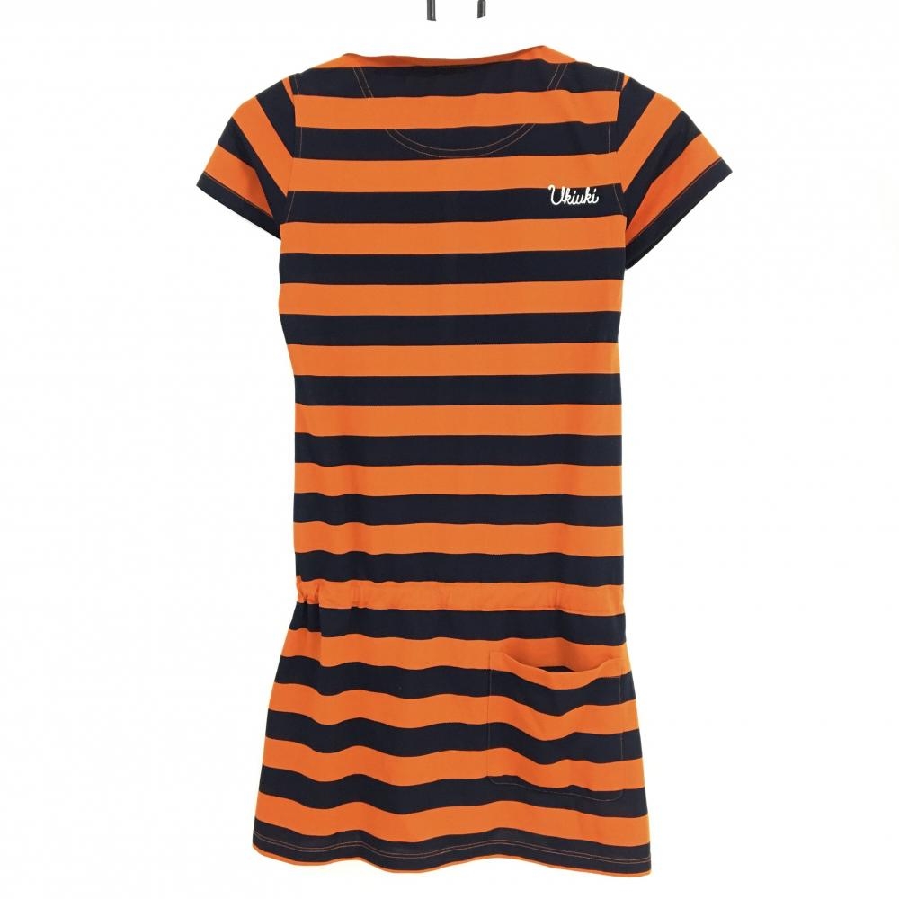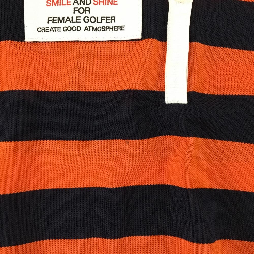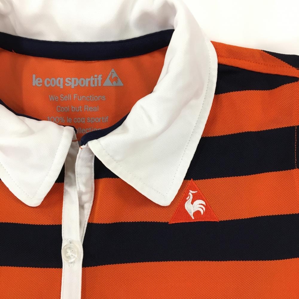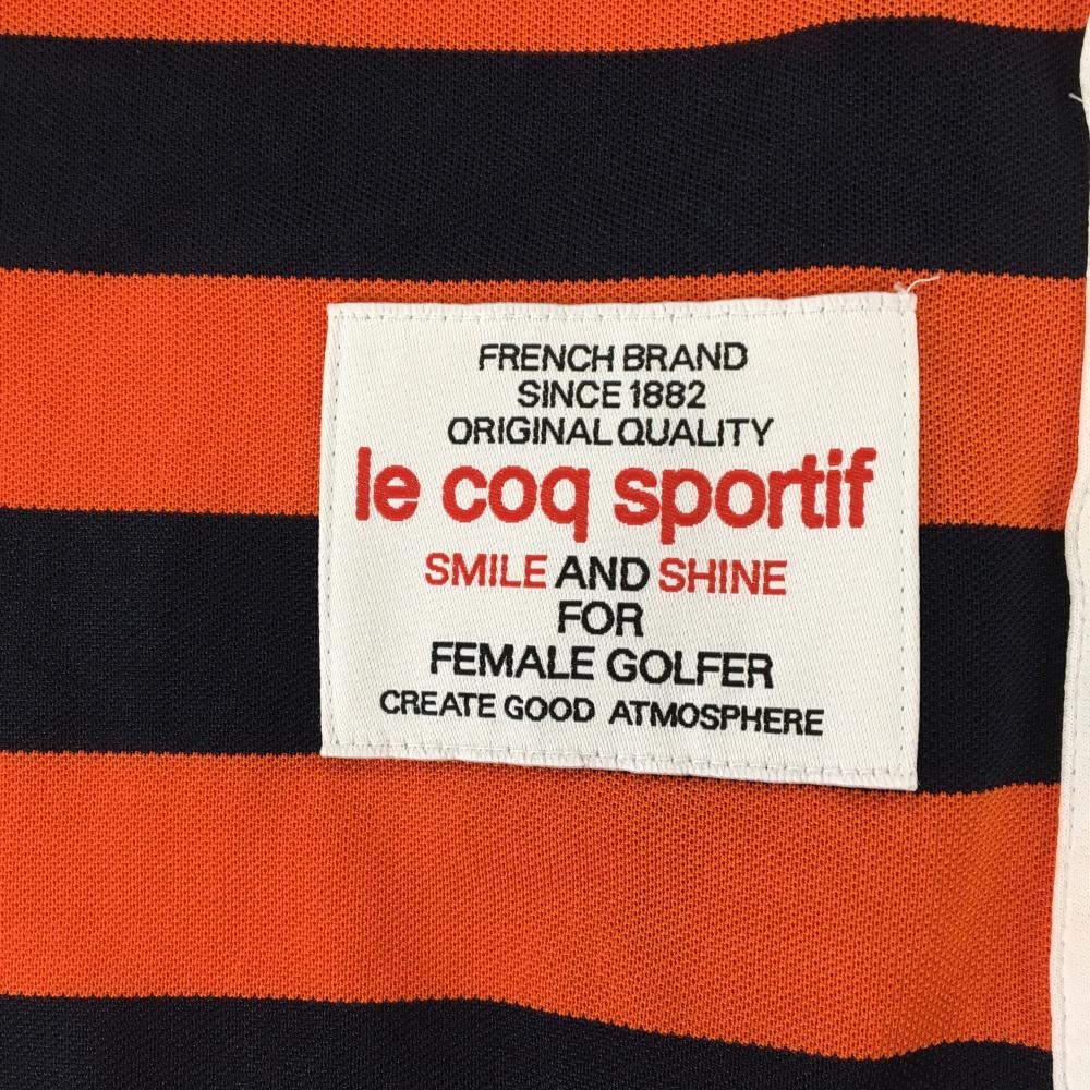 【美品】ルコック 半袖ポロワンピース ネイビー×オレンジ ボーダー ロゴ刺しゅう レディース S ゴルフウェア le coq sportif