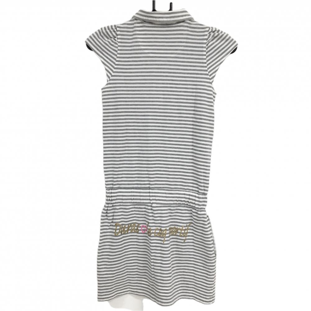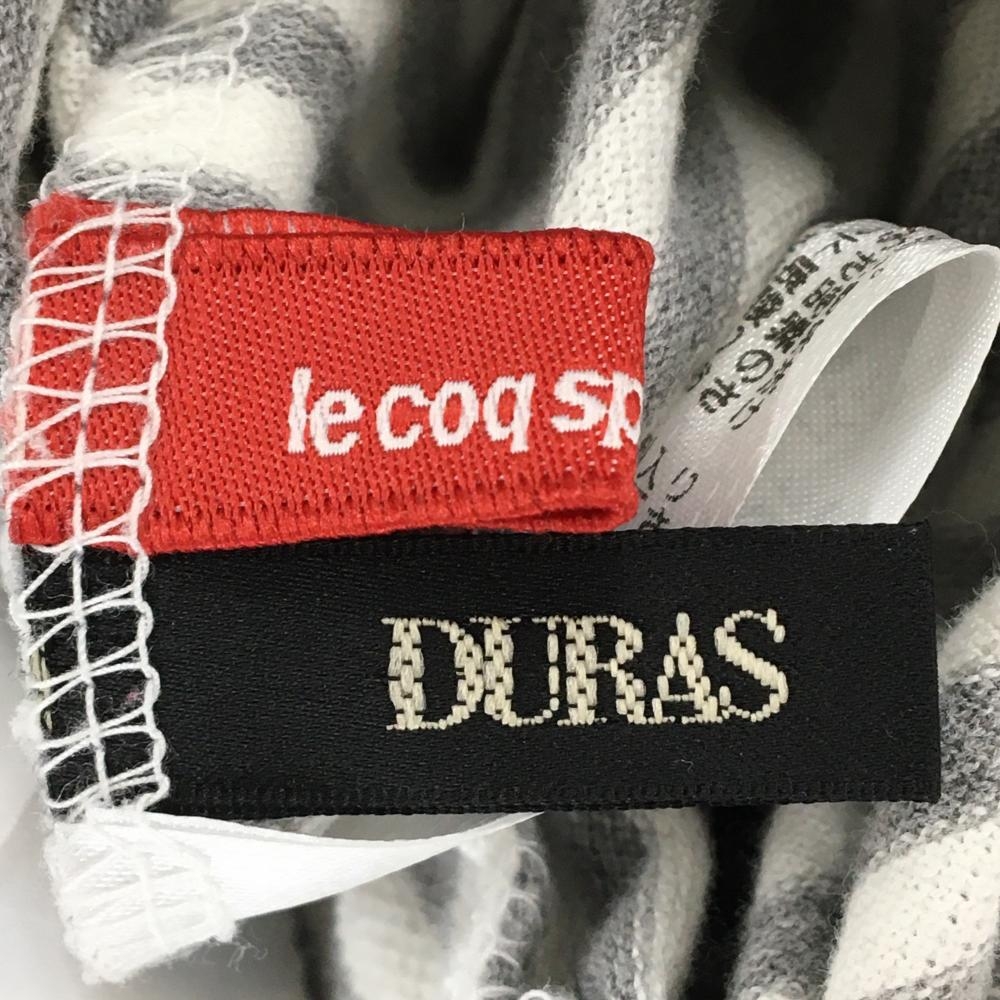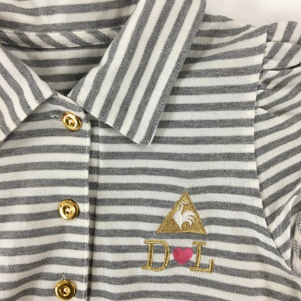 【美品】ルコック 半袖ポロワンピース 白×グレー ボーダー ロゴ刺しゅう ラメ糸 レディース S ゴルフウェア le coq sportif