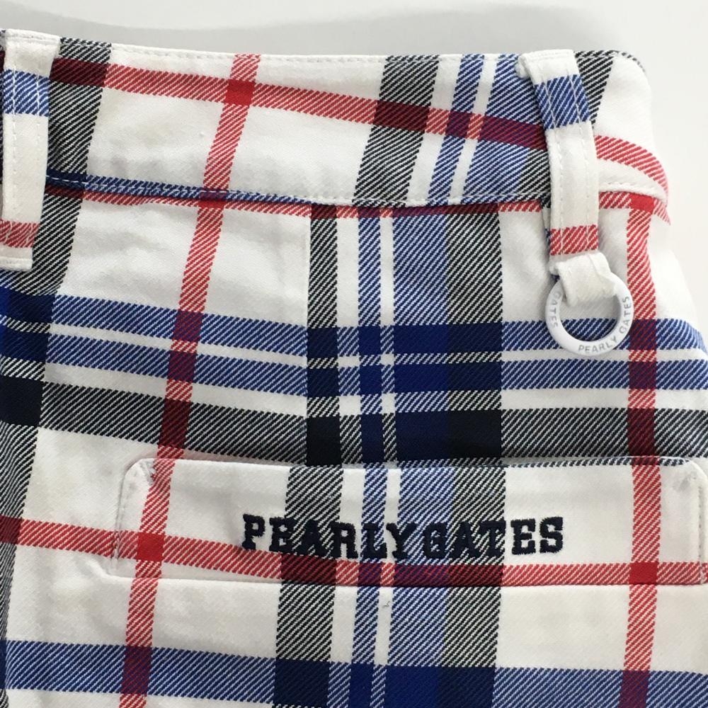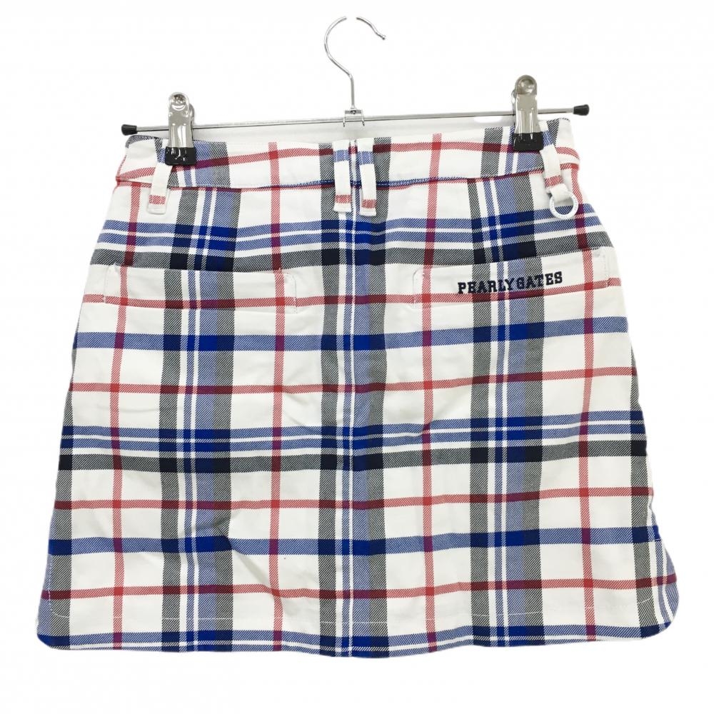 【超美品】パーリーゲイツ スカート 白×ブルー×レッド チェック コットン混 レディース 00(XS) ゴルフウェア PEARLY GATES