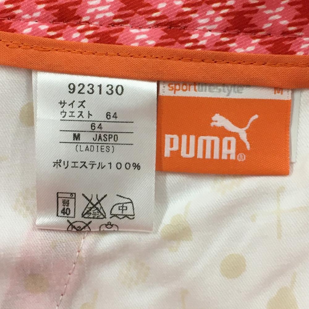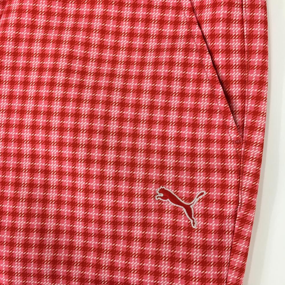 【超美品】プーマ パンツ ピンク×レッド チェック柄 ロゴ刺しゅう レディース M ゴルフウェア PUMA