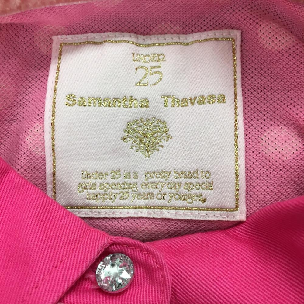 【新品】サマンサタバサ UNDER25 半袖ポロワンピース ピンク×白 ドット 日本製 ワッペン レディース S ゴルフウェア Samantha Thavasa