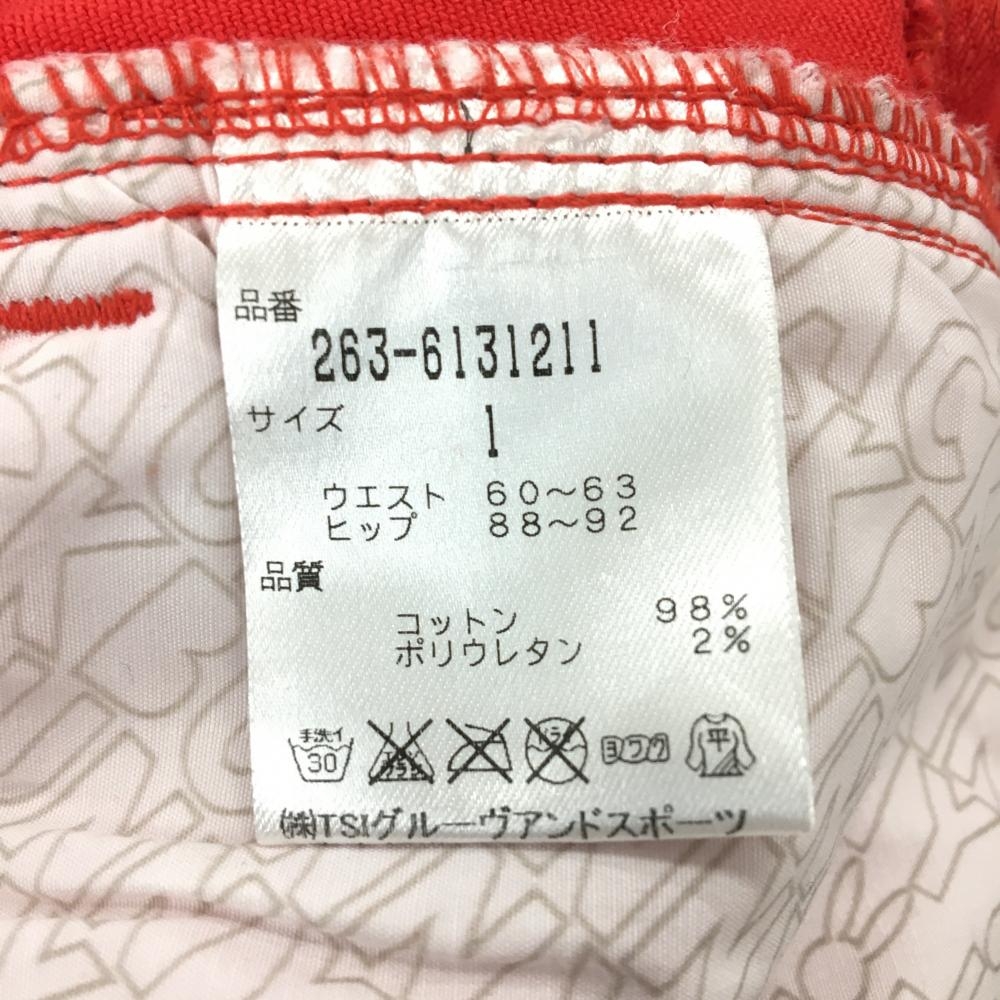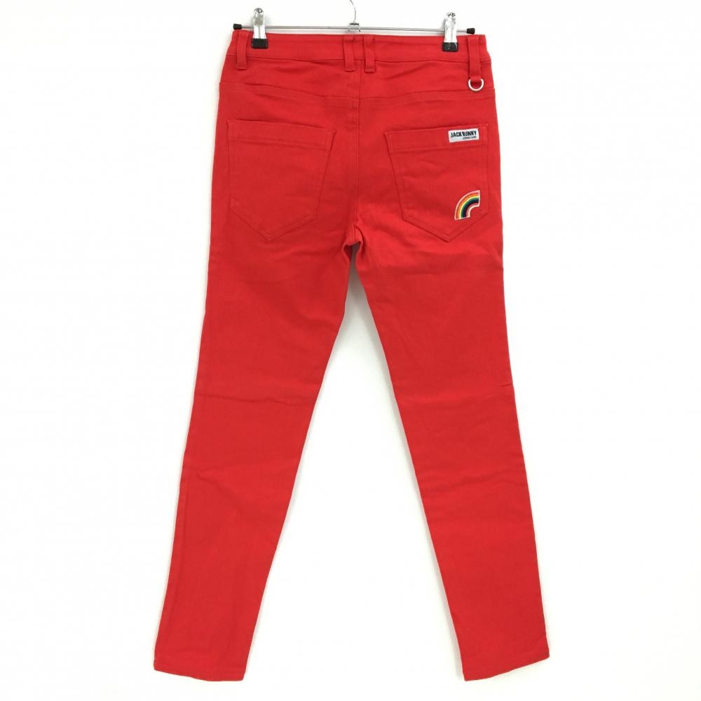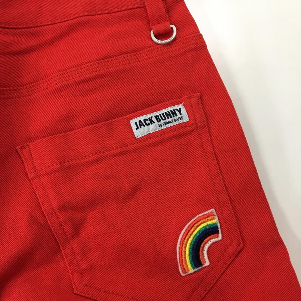 【美品】ジャックバニー パンツ レッド バックロゴ レインボーワッペン レディース 1(M) ゴルフウェア Jack Bunny