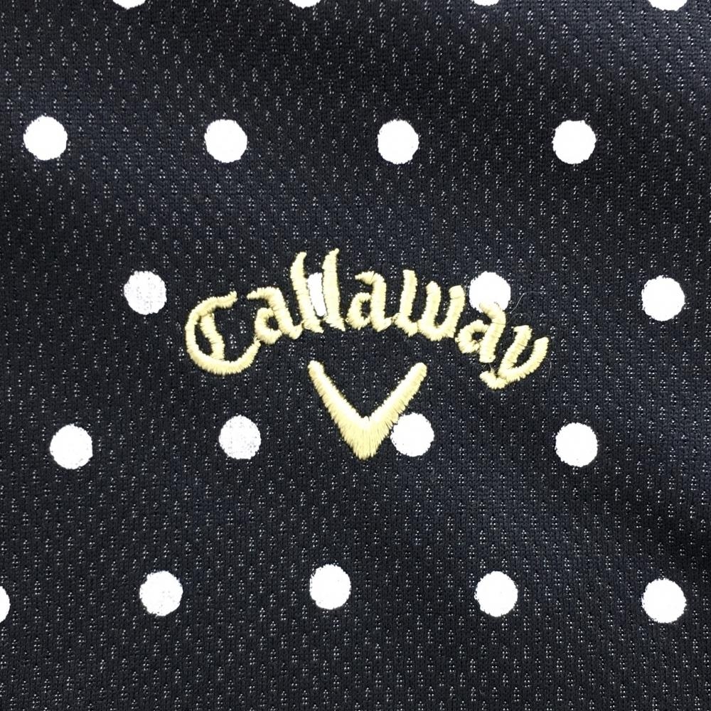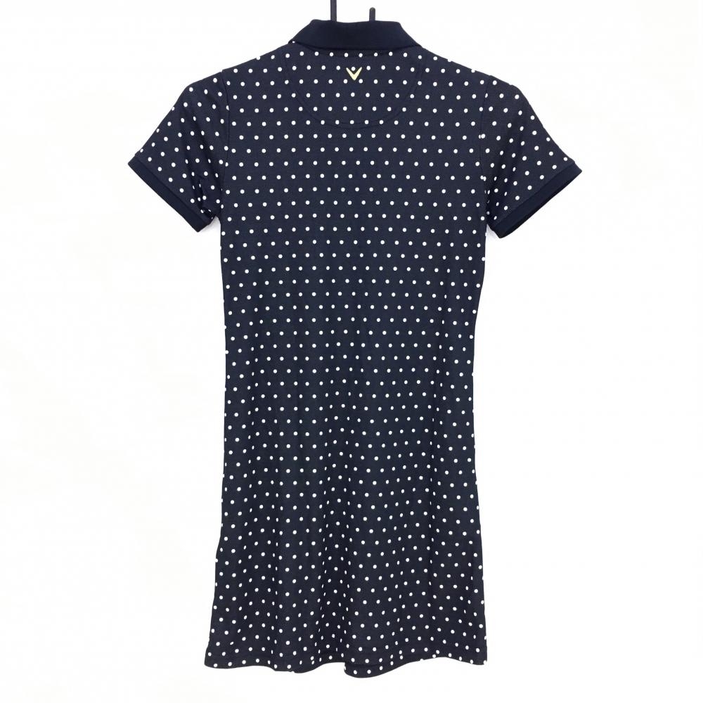【超美品】キャロウェイ 半袖ポロワンピース 黒×白 ドット 総柄 ロゴ刺しゅう レディース S ゴルフウェア Callaway