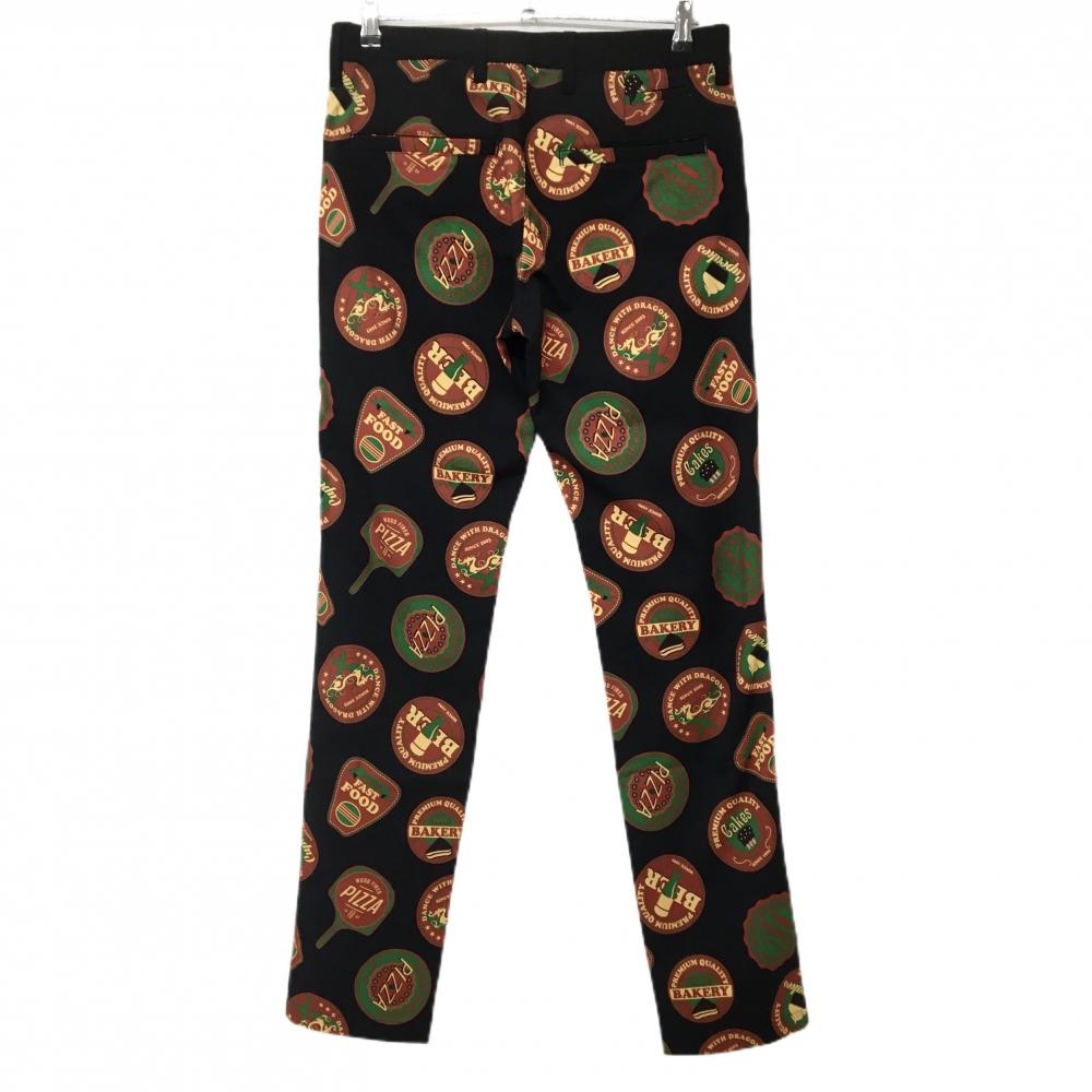 【新品】ダンスウィズドラゴン パンツ 黒×ブラウン 後総柄 保温 ストレッチ メンズ 2(M) ゴルフウェア Dance With Dragon
