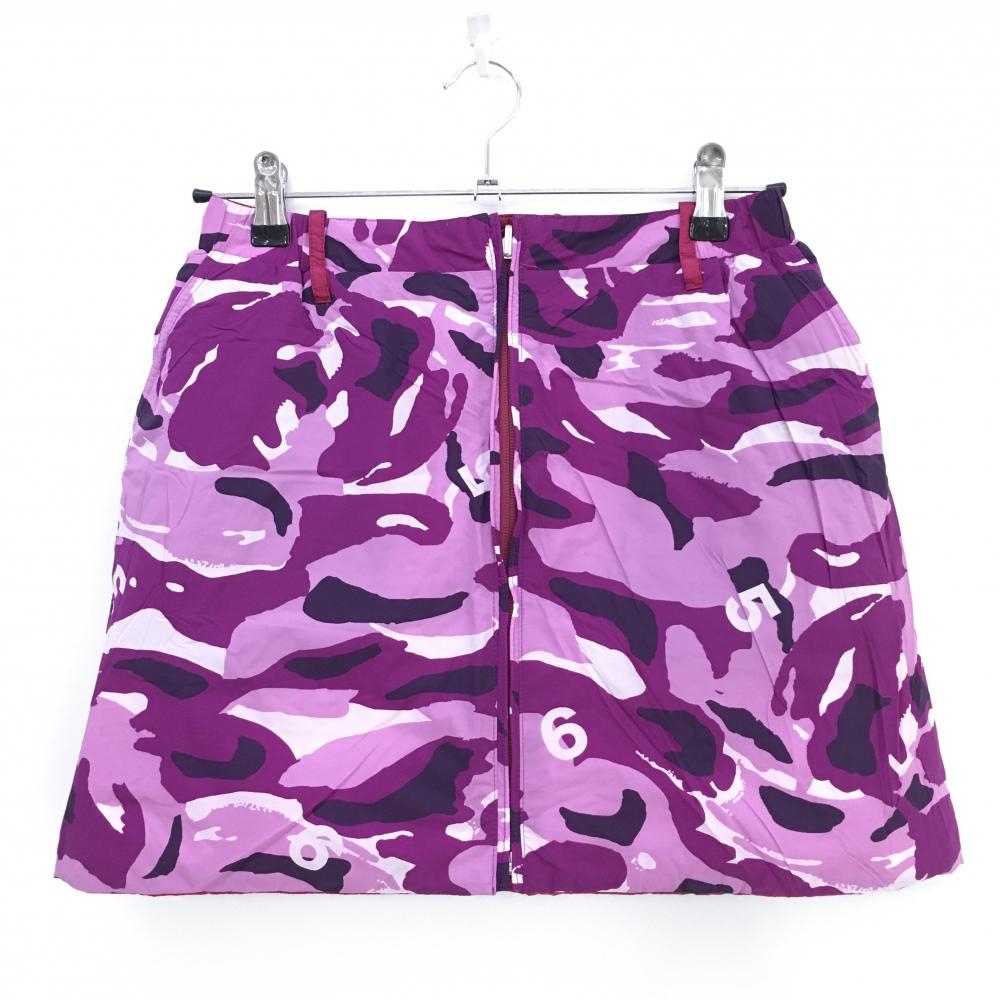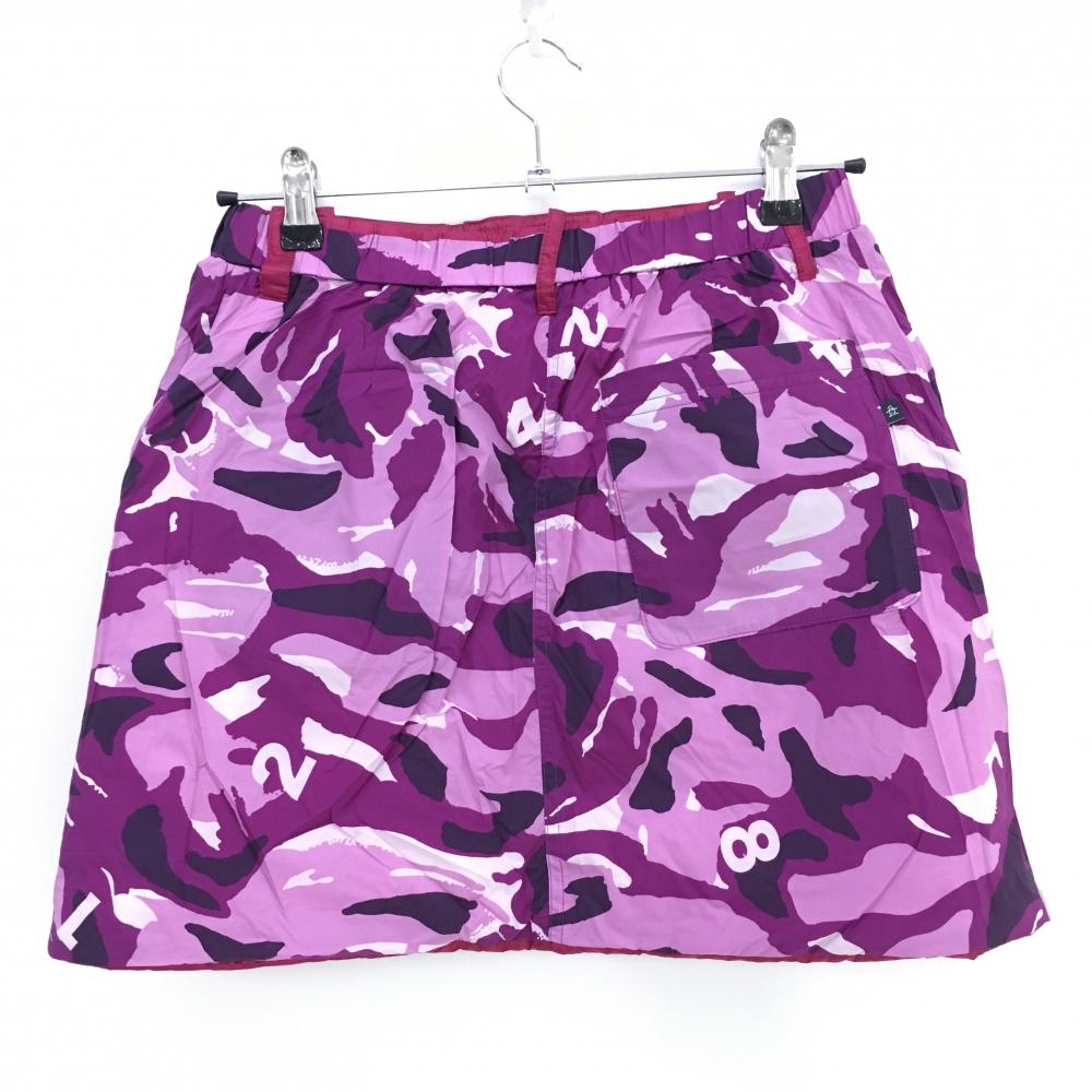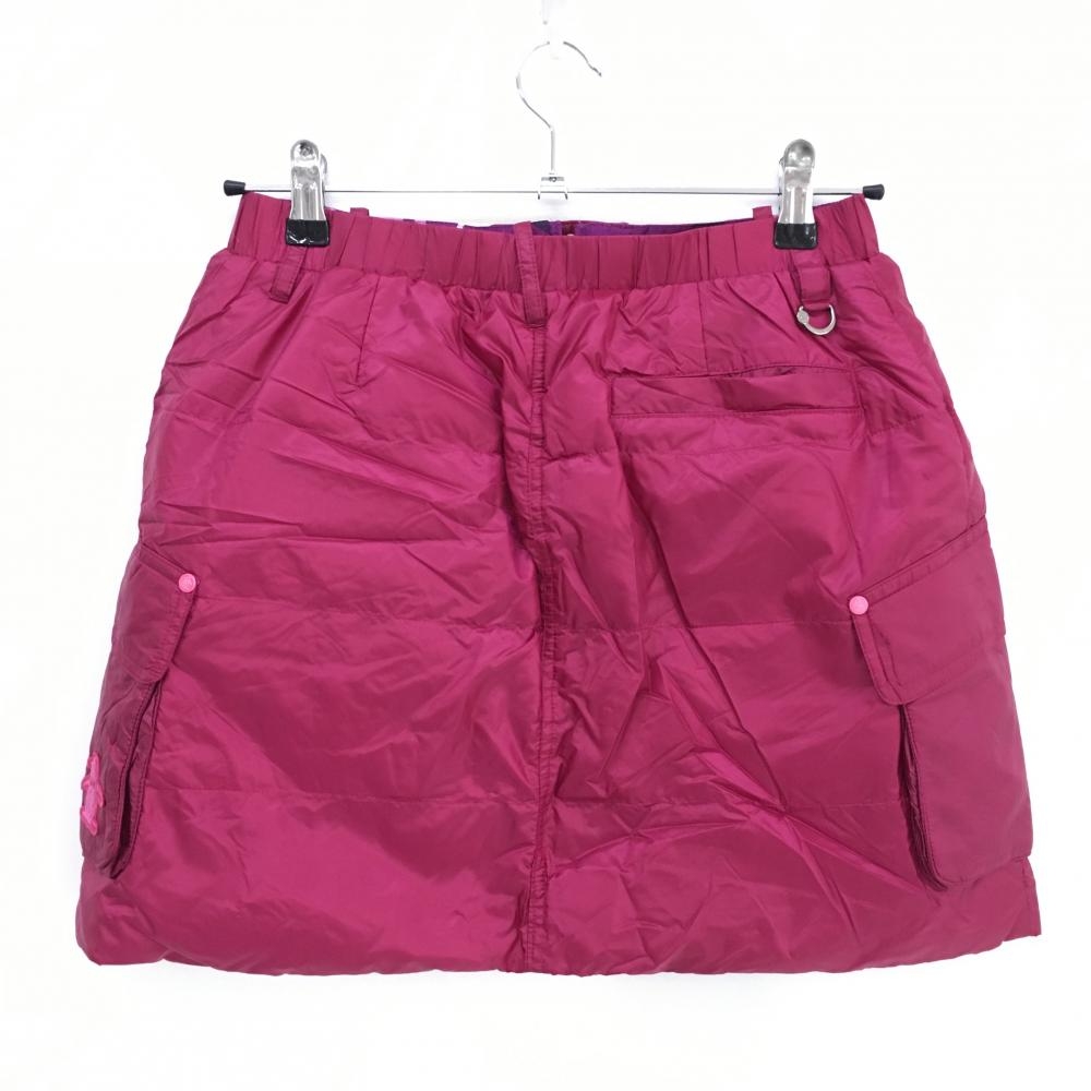 【美品】マンシングウェア リバーシブルダウンスカート ボルドー×パープル 総柄 フロントジップ レディース M ゴルフウェア Munsingwear
