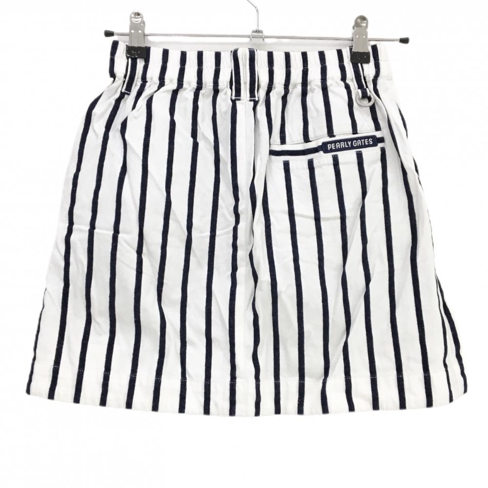 【美品】パーリーゲイツ スカート 白×ネイビー ストライプ コットン100% レディース 00(XS) ゴルフウェア PEARLY GATES