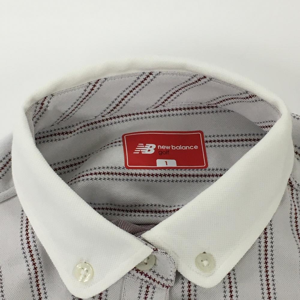 【美品】ニューバランスゴルフ 長袖シャツ ライトグレー×ボルドー ストライプ調 ロゴ刺しゅう レディース 1(M) ゴルフウェア New Balance