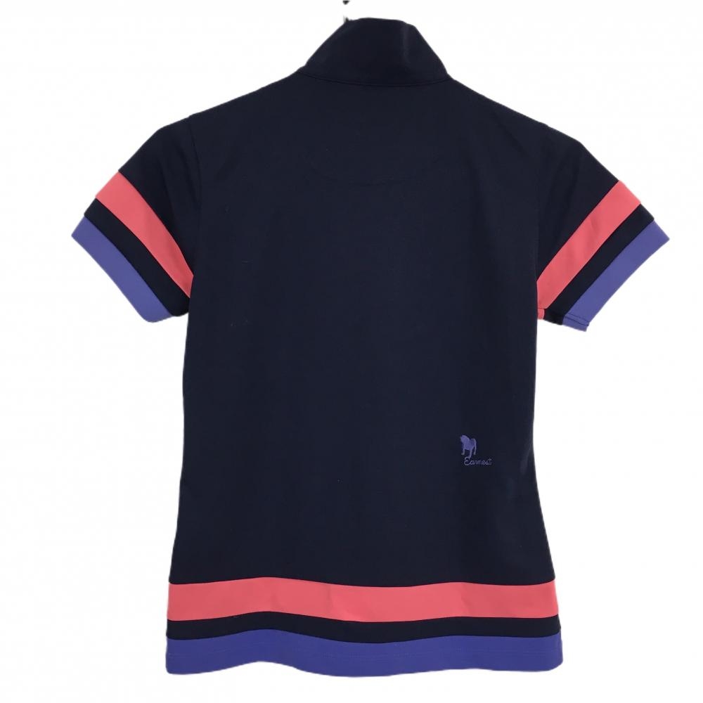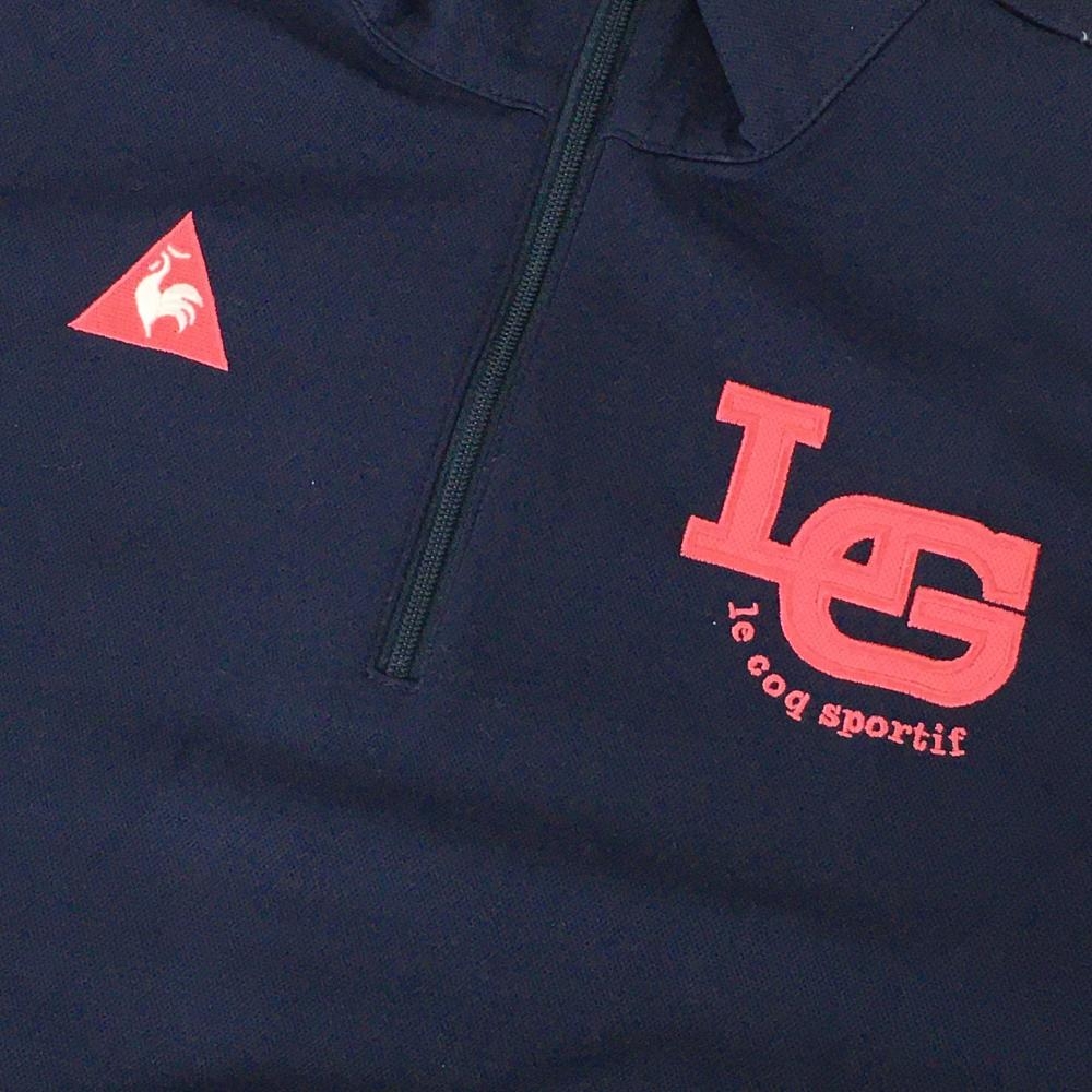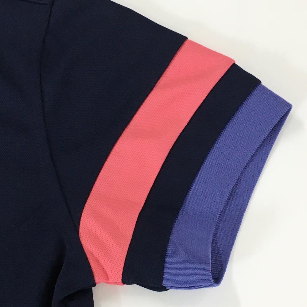 【超美品】ルコック 半袖ハイネックシャツ ネイビー×ピンク 袖・裾ライン ハーフジップ レディース M ゴルフウェア le coq sportif