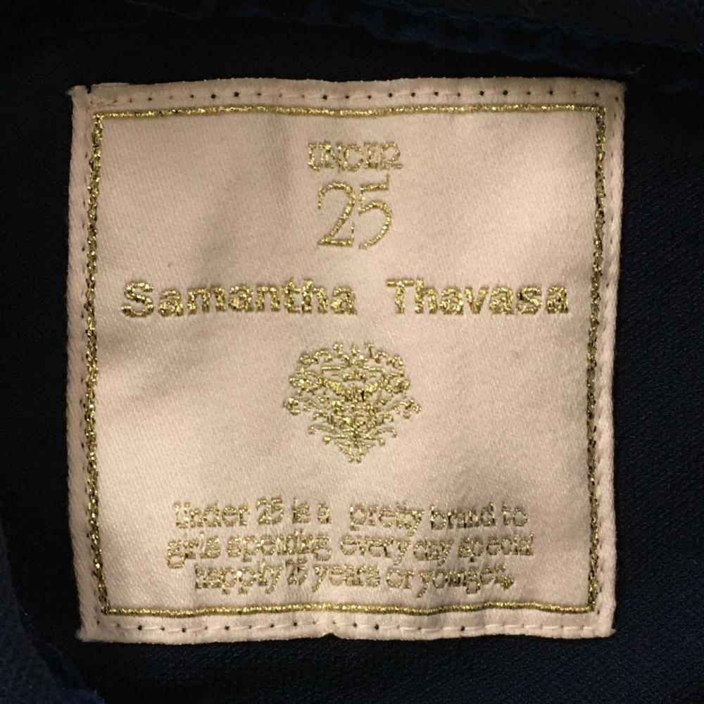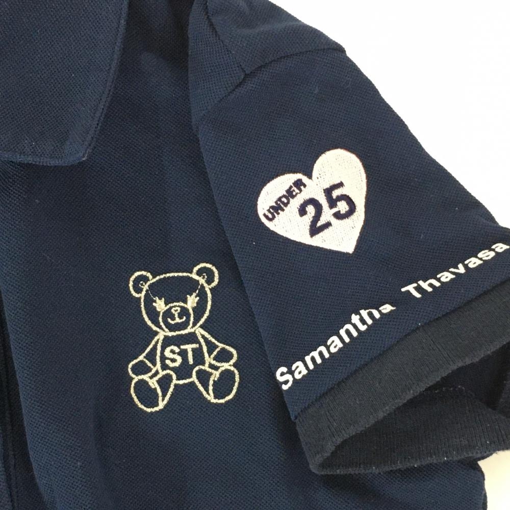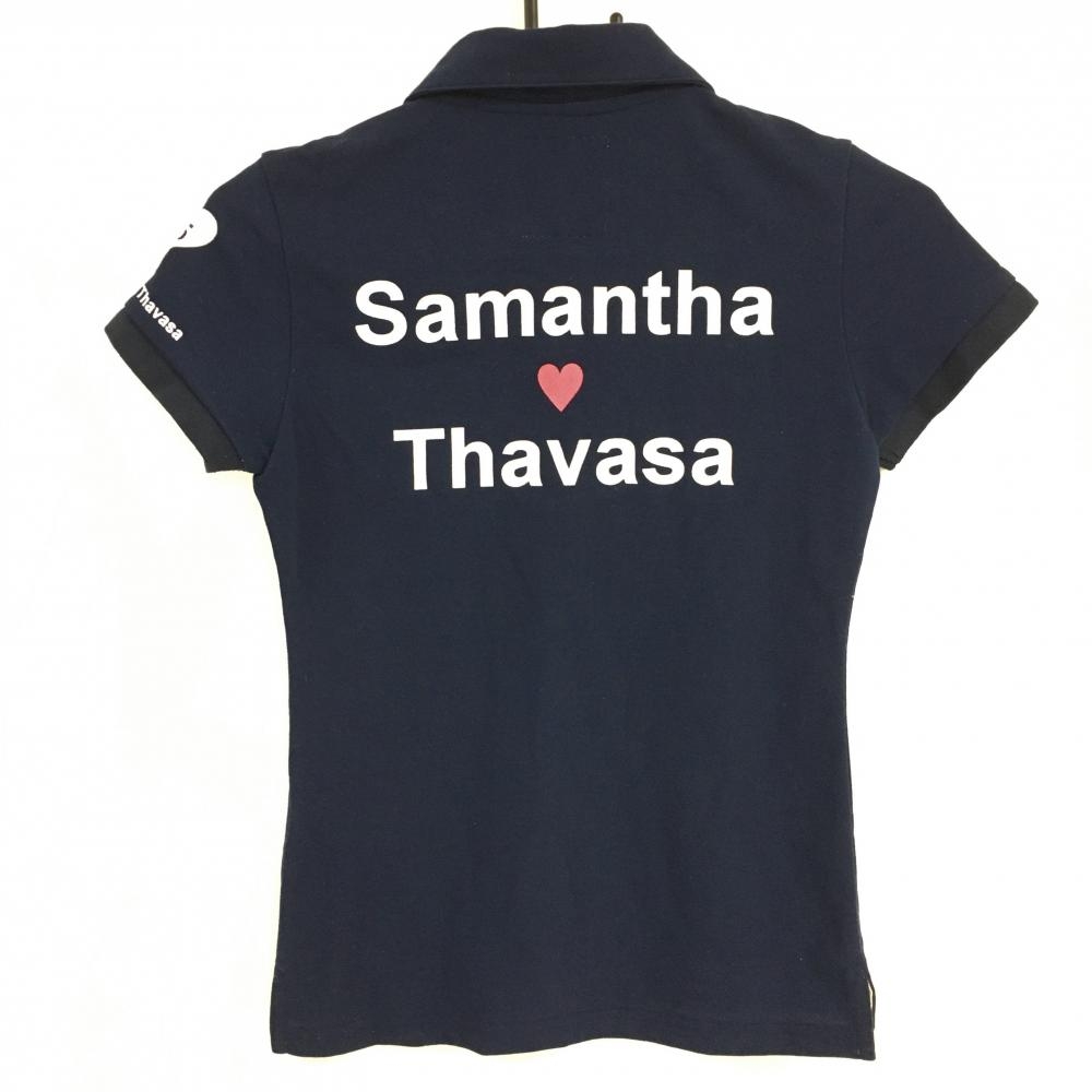 【美品】サマンサタバサ UNDER25 半袖ポロシャツ ネイビー×白 バックロゴ ベア レディース S ゴルフウェア Samantha Thavasa
