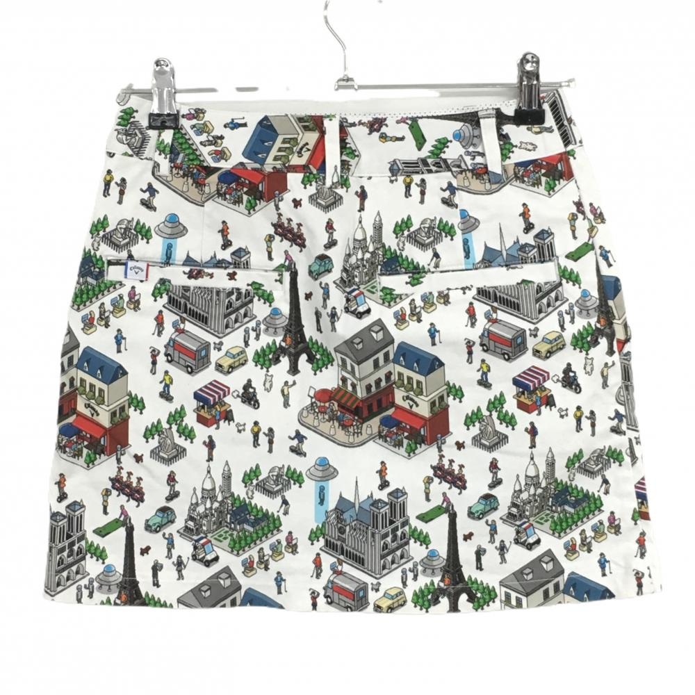 【超美品】キャロウェイ スカート 白×マルチ 街並み柄 レディース S ゴルフウェア Callaway