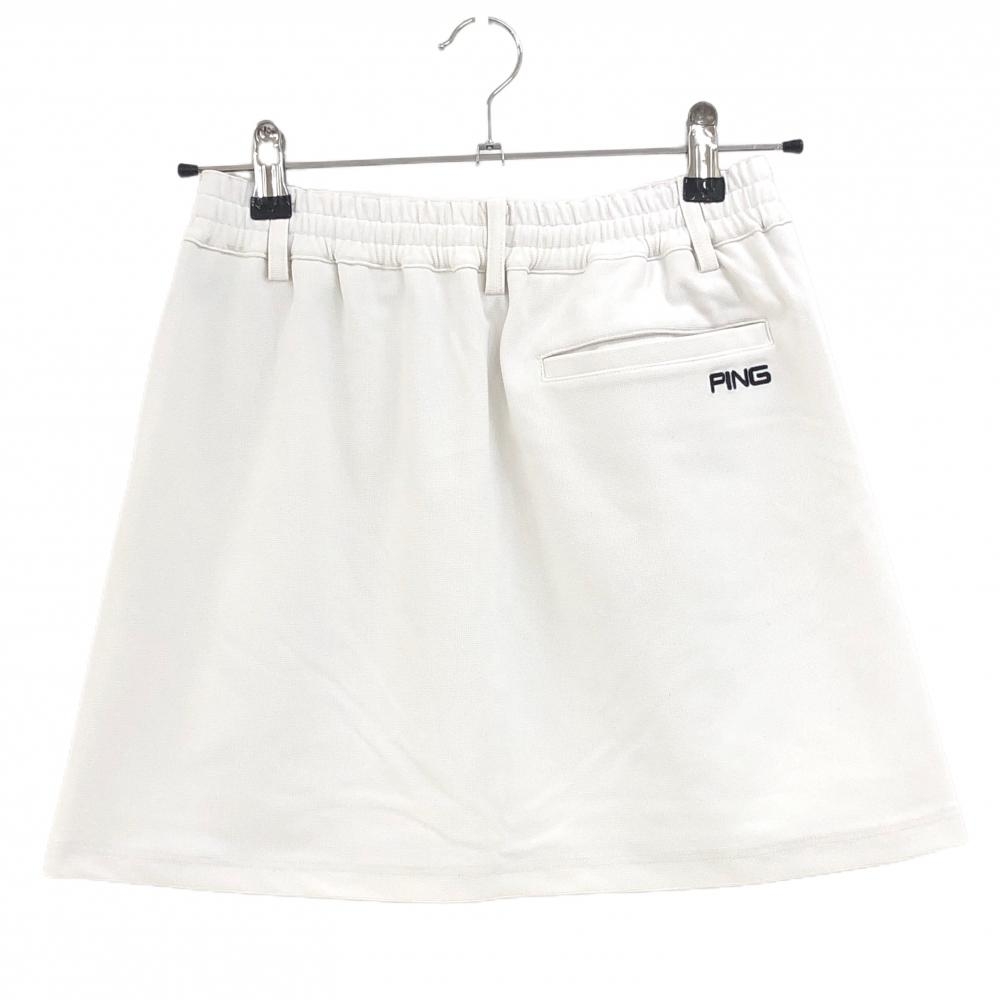 【美品】ピン ストレッチスカート 白 ウエストゴム&調節紐 裏地付 レディース S ゴルフウェア PING
