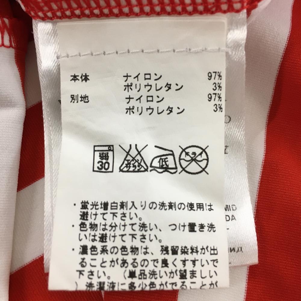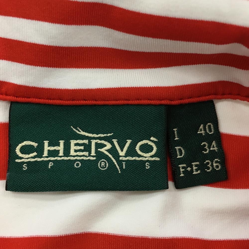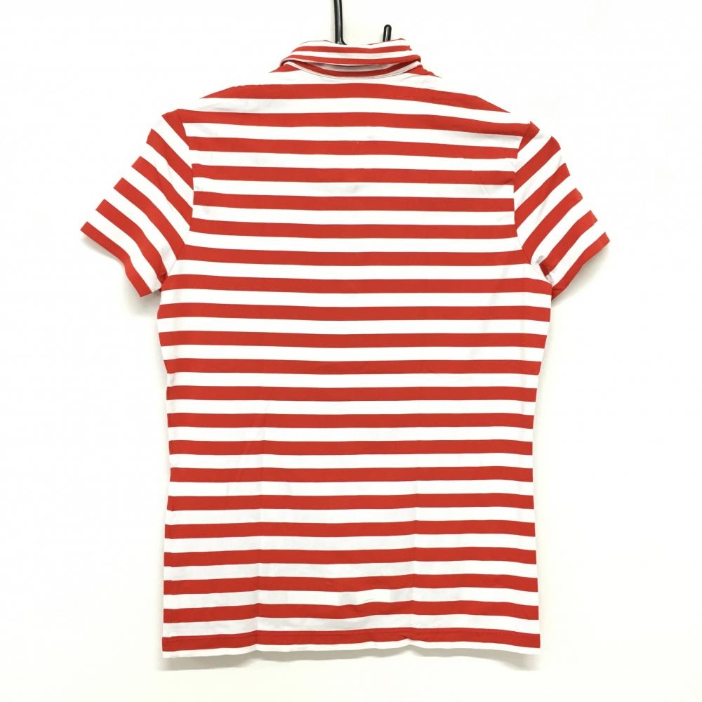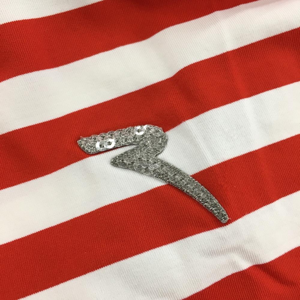 【超美品】シェルボ 半袖ポロシャツ レッド×白 ボーダー スパンコール レディース USA 4-XS ゴルフウェア CHERVO