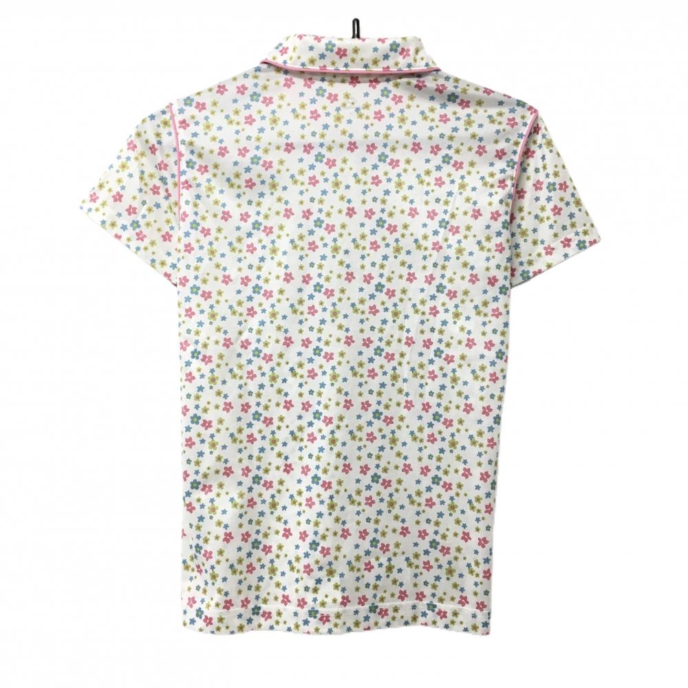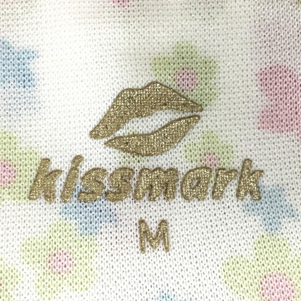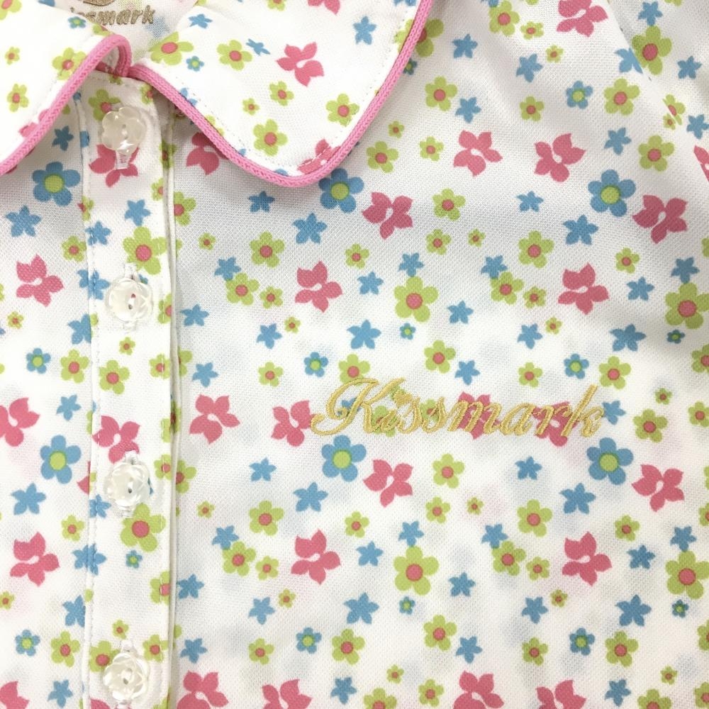 【超美品】キスマーク 半袖ポロシャツ 白×ピンク 花柄 レディース M ゴルフウェア Kissmark