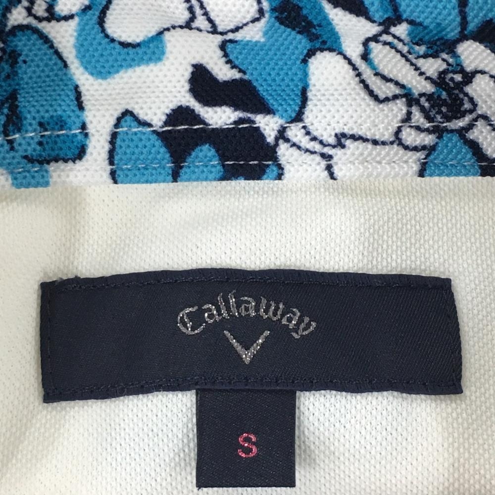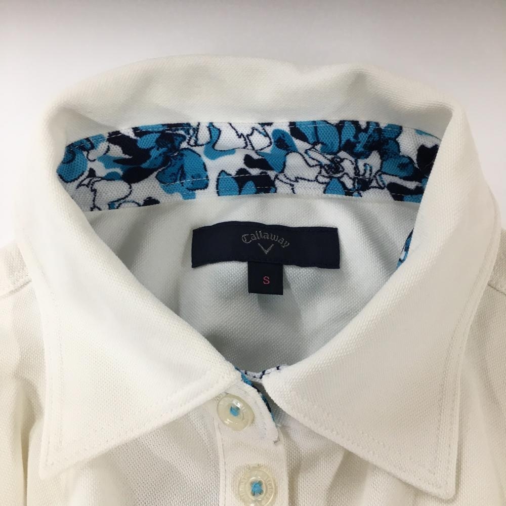 キャロウェイ 半袖ポロシャツ 白 クラウン刺しゅう 襟裏花柄 レディース S ゴルフウェア Callaway