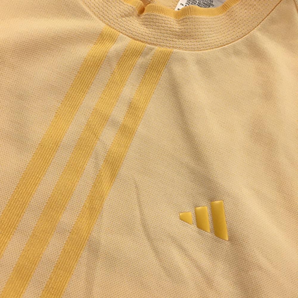 アディダス 半袖ハイネックシャツ オレンジ 3ライン ニット メンズ M ゴルフウェア 2023年モデル adidas