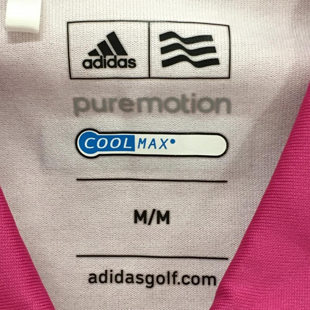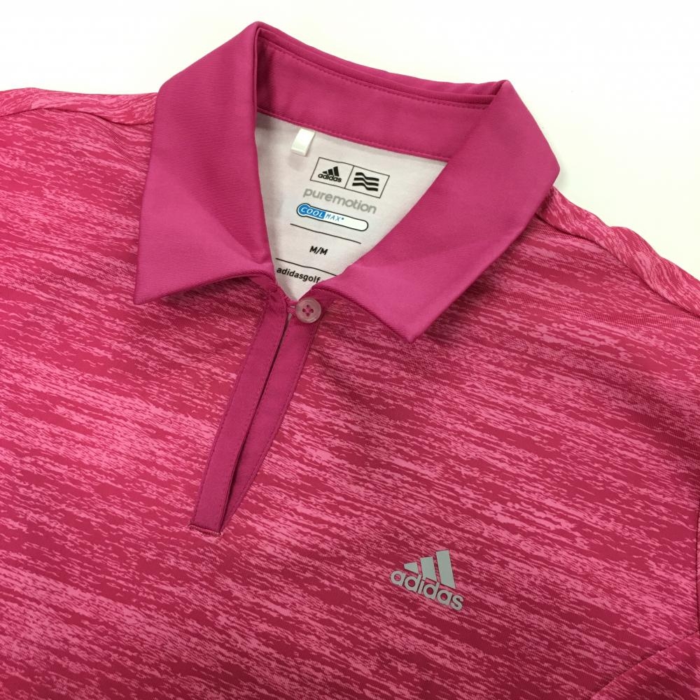 【超美品】アディダス 半袖ポロシャツ ピンク 総柄 COOLMAX クールマックス レディース M/M ゴルフウェア adidas