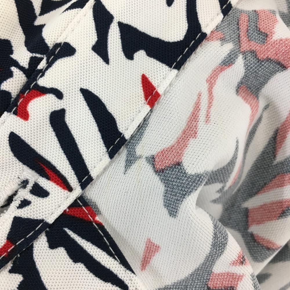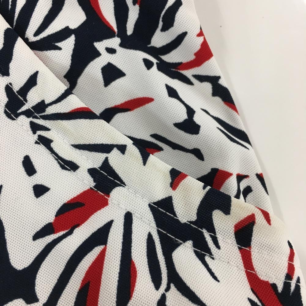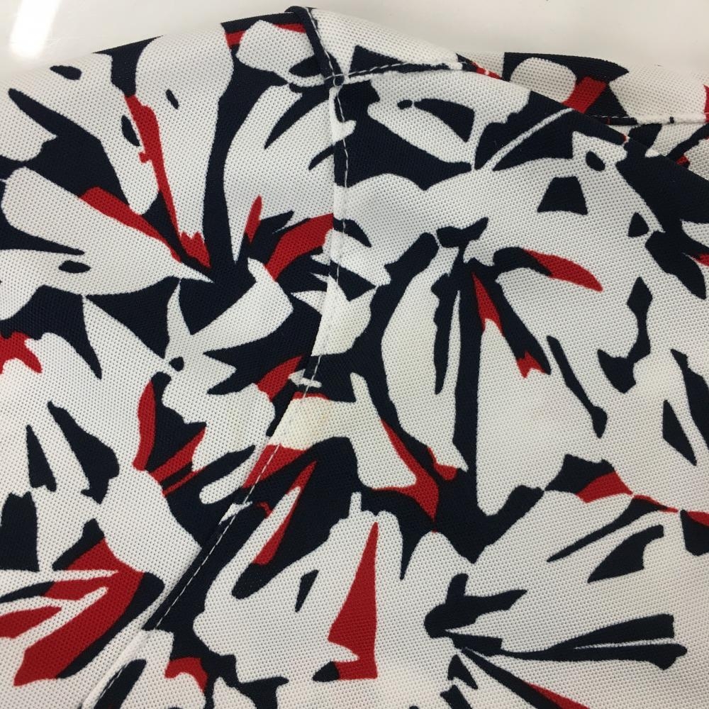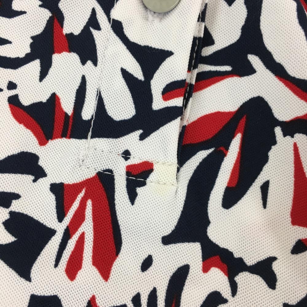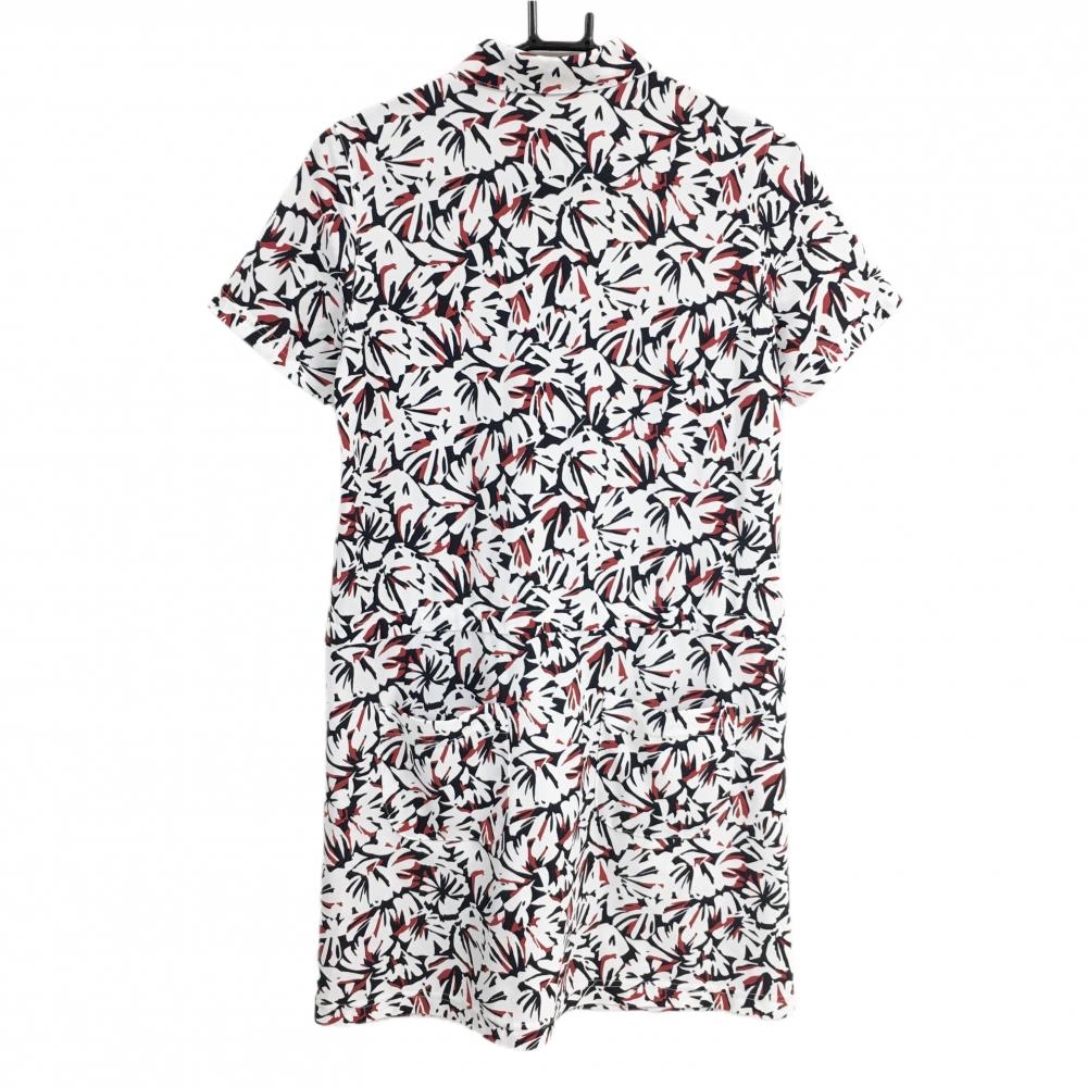アダバット 半袖ポロワンピース 白×ネイビー 総柄 インナーパンツ付き レディース 38(M) ゴルフウェア adabat