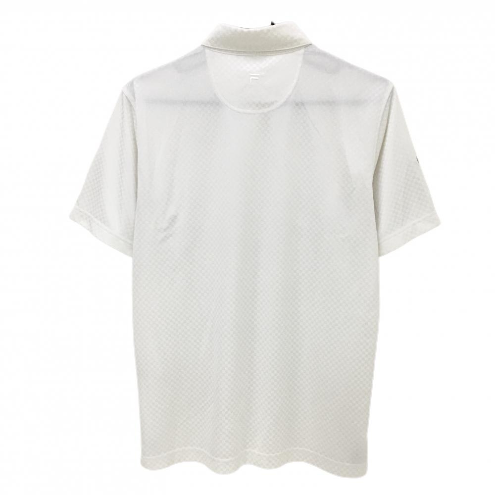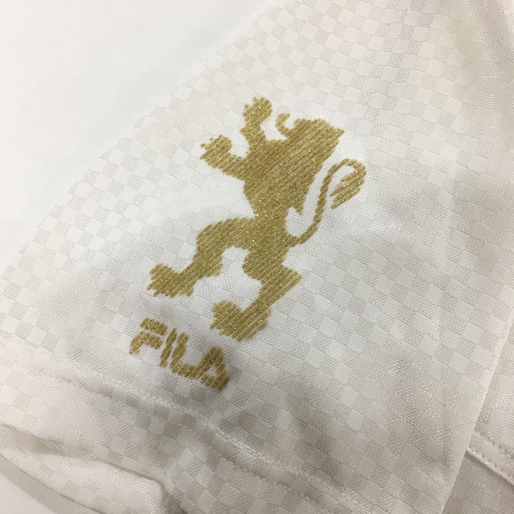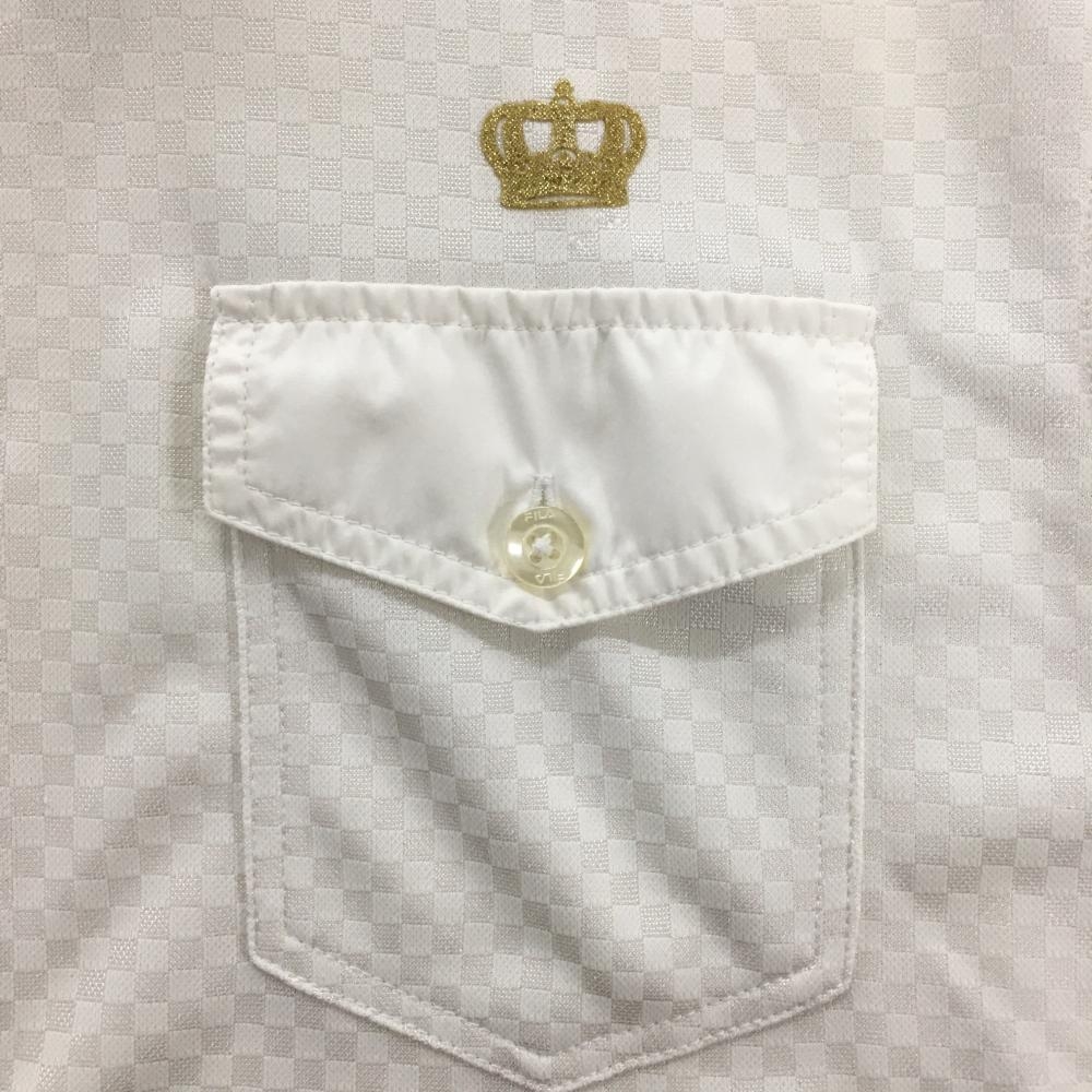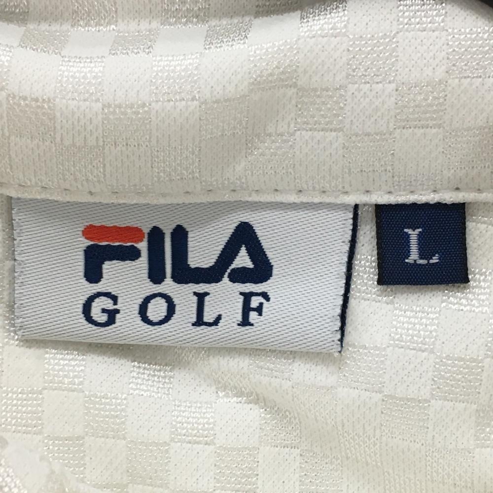 【美品】フィラゴルフ 半袖ポロシャツ 白 ブロックチェック織生地 ボタンダウン 胸ポケット メンズ L ゴルフウェア FILA GOLF