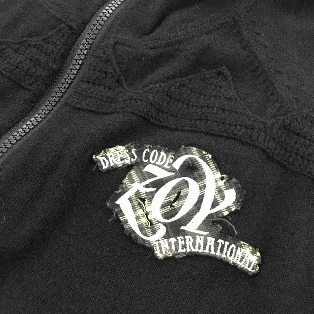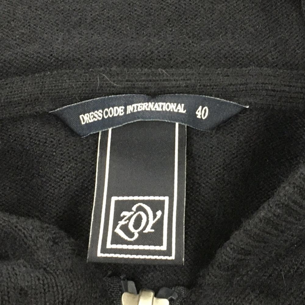 【美品】ゾーイ ニットジップパーカー ネイビー 胸ロゴ ダブルジップ レディース 40(L) ゴルフウェア ZOY