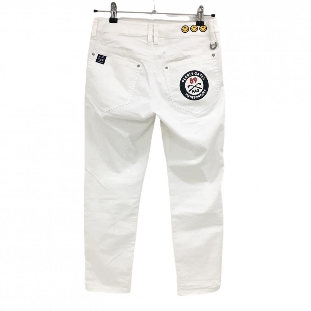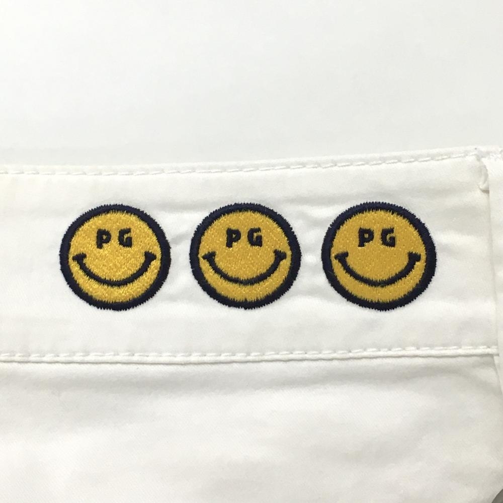 【美品】パーリーゲイツ パンツ 白 ニコちゃん スマイル ティー装着可 レディース 0(S) ゴルフウェア PEARLY GATES
