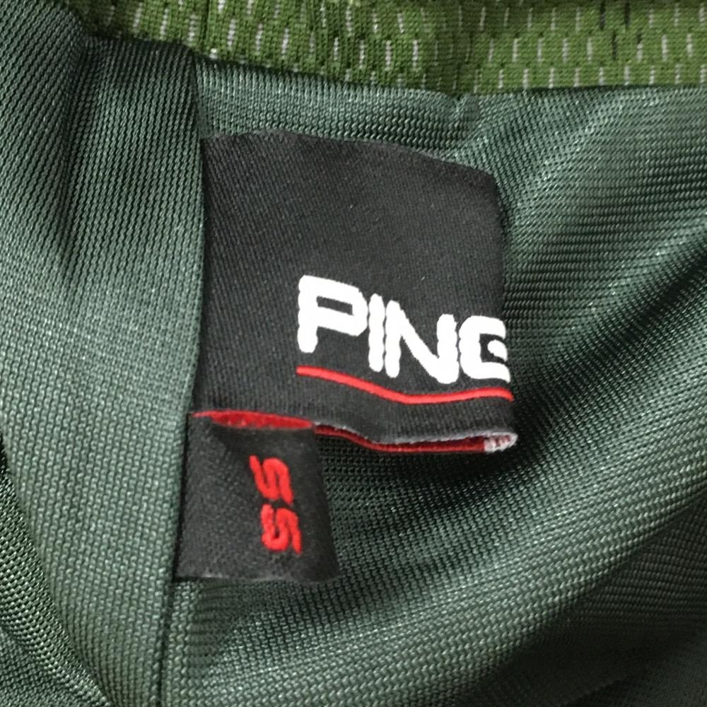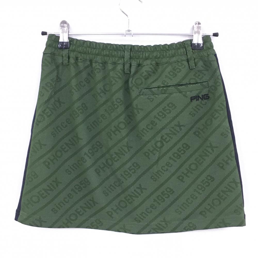 【超美品】ピン スカート ダークグリーン 英字総柄 サイド黒ライン ウエストゴム&調節紐 レディース SS ゴルフウェア PING