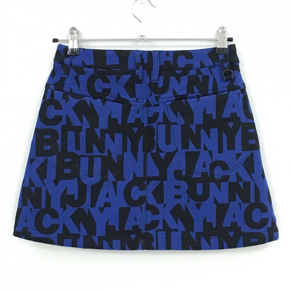 ジャックバニー スカート ブルー×黒 ロゴ総柄 ストレッチ 裏起毛 内側インナーパンツ レディース 0(S) ゴルフウェア Jack Bunny
