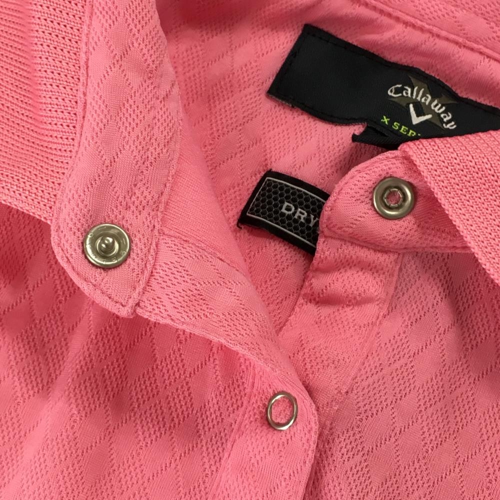 キャロウェイ 半袖ポロシャツ ピンク 織生地 ロゴ刺しゅう レディース L ゴルフウェア Callaway