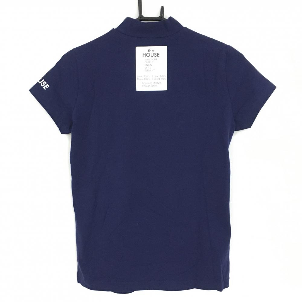 【超美品】パーリーゲイツ 半袖ハイネックシャツ ネイビー×イエロー the HOUSE限定 刺しゅう レディース 1(M) ゴルフウェア PEARLY GATES