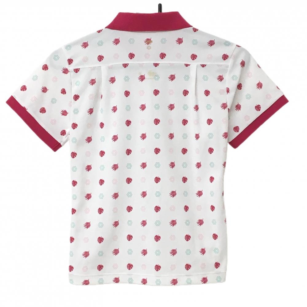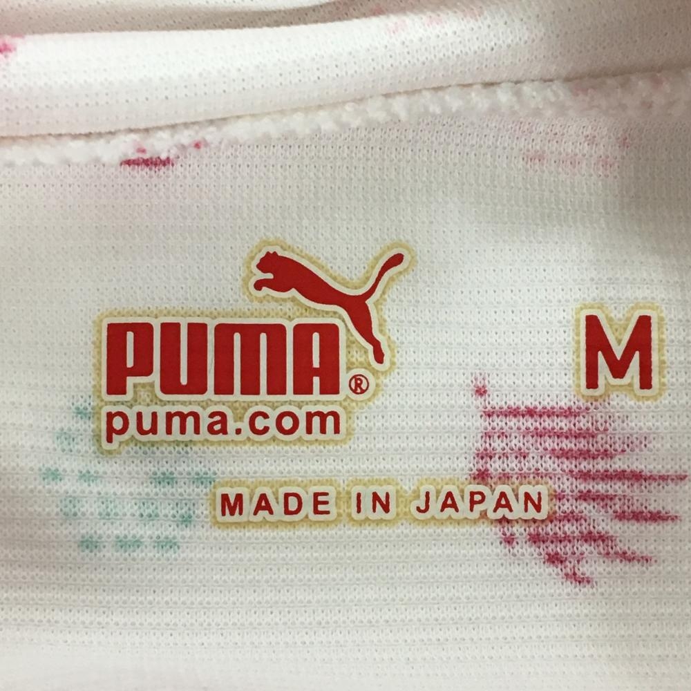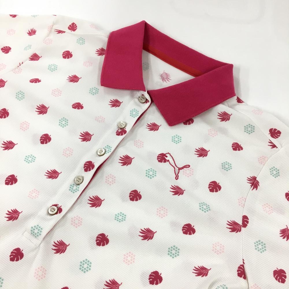 【美品】プーマ 半袖ポロシャツ 白×ピンク 総柄 ロゴ刺しゅう レディース M ゴルフウェア PUMA