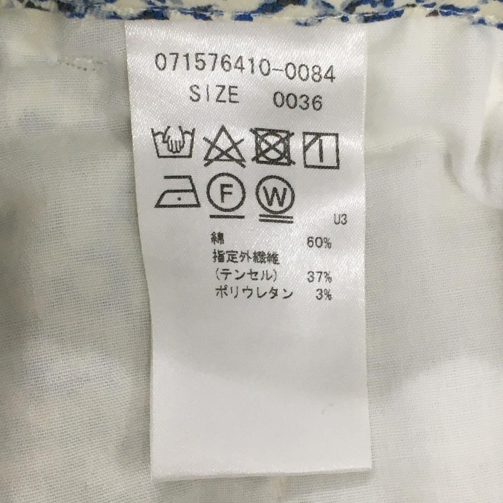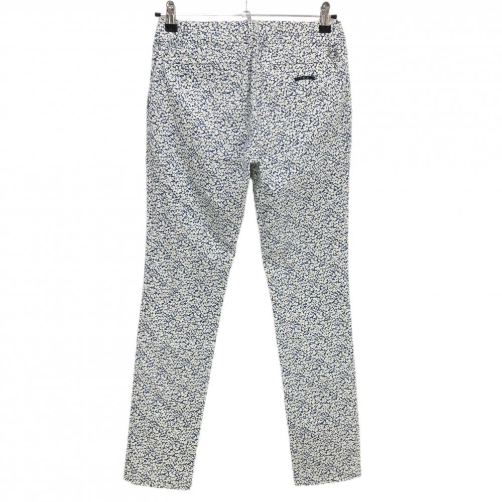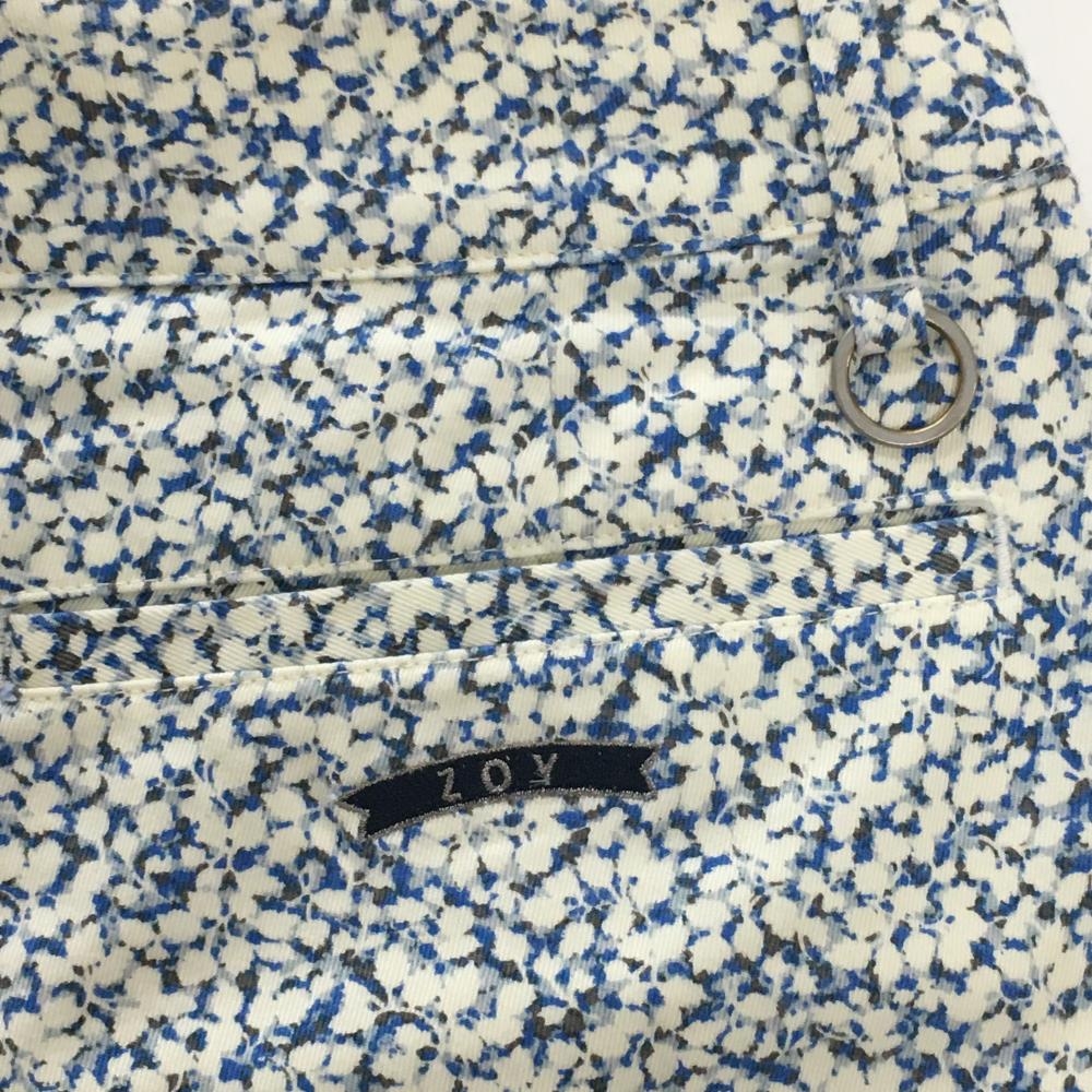 ゾーイ×LIBERTY パンツ 白×ブルー 総柄 ラインストーンロゴ レディース 36(S) ゴルフウェア ZOY
